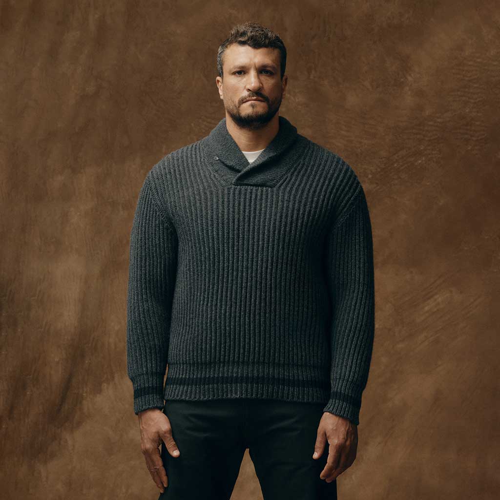 Der Bristol Shawl Neck Sweater von Filson ist die Art von Strickwaren, die für Jahrzehnte, nicht für Saisons, gemacht ist. Der in Italien aus 100 % Wolle gefertigte Pullover mit dem charakteristischen vertikalen Fischerrippenmuster wird von Generation zu Generation weitergegeben und landet nicht auf dem Stapel der Wohltätigkeitsorganisation. Die dicke Konstruktion sorgt dafür, dass er Sie auch bei schlechtem Wetter schön warm hält, und natürlich hat Wolle die natürliche Fähigkeit, auch bei Nässe zu isolieren - ein bisschen Nieselregen wird Sie also nicht mit den Zähnen klappern lassen. Der Schalkragen ist nicht nur eine Zierde - Sie können ihn gegen den kalten Wind hochschlagen, um Ihren Hals zusätzlich zu schützen - während die Rippenbündchen an Ärmeln und Saum die Zugluft abhalten. Bei diesem Gewicht und dieser Qualität handelt es sich um eine Investition, die auch dann noch schick aussieht, wenn billigere Alternativen schon längst den Geist aufgegeben haben.