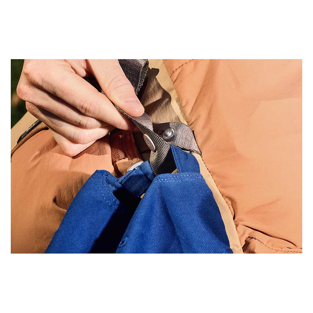 - Zusätzliche Druckknöpfe an den vorderen Gurten zur Befestigung von Extras