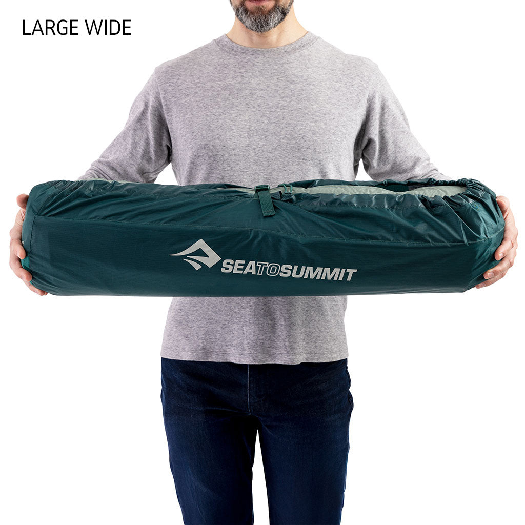 Sea to Summit's Comfort Deluxe is a 10cm-thick self-inflating mat that actually delivers on the promise of a decent night's sleep outdoors, thanks to its Air Frame construction that creates stable, supportive zones across the entire surface. The stretch knit top fabric moulds around your body rather than against it, eliminating those pressure points that have you shifting position every twenty minutes. It's also built with genuinely lower-impact materials – solution-dyed and recycled fabrics, non-PFAS chemistry, and support for 1% for the Planet partners. The included Airstream pump sack means you won't be left gasping for breath trying to inflate the thing, and the XPEL valve makes deflation mercifully quick when it's time to pack up camp. Available in Regular Wide, Large Wide, and a Double size for those who've convinced their partner that wild camping is a good idea.