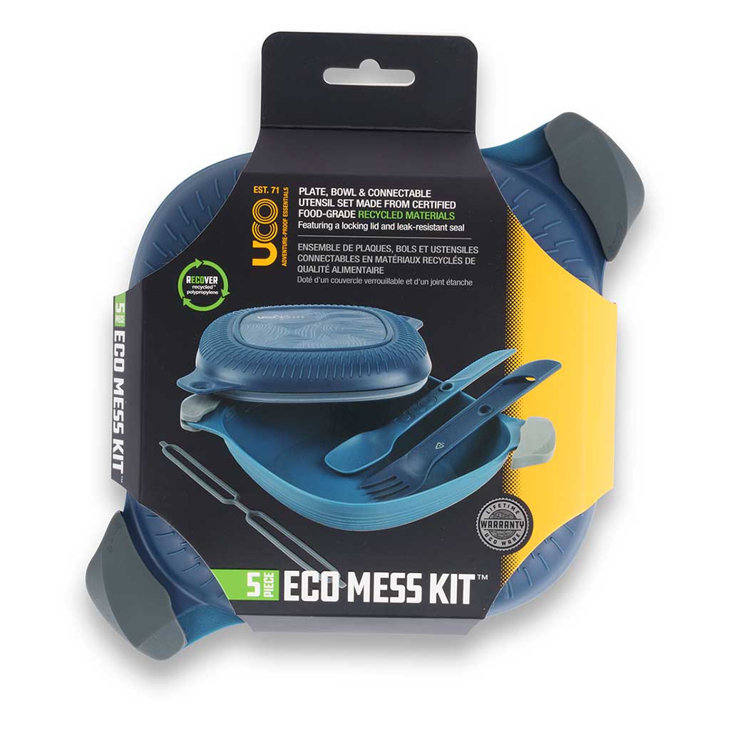 Mahlzeiten im Freien sollten sich wie ein Teil des Abenteuers anfühlen - nicht wie ein Kompromiss. Das 5-teilige ECO Mess Kit von UCO Gear ist die All-in-One-Lösung für gutes Essen im Freien, ohne Abfall zu produzieren. Dieses robuste, langlebige Set aus recycelten, BPA-freien Materialien enthält alles, was Sie für Mahlzeiten unterwegs brauchen: einen Teller, eine Schüssel, einen Göffel, eine Leine und einen Deckel, der gleichzeitig als Schneidebrett dient. Ganz gleich, ob Sie sich an einen Campingkocher kuscheln, ein Festmahl nach einer Wanderung zubereiten oder einfach nur Bohnen mit der Stirnlampe genießen, dieses Set bietet ein Maß an Organisation und Komfort, das die ganze Erfahrung aufwertet. Und da es leicht und kompakt ist, verschwindet es im Rucksack, bis Sie es brauchen - bereit für wilde Biwaks, Picknick-Mahlzeiten oder Camping-Rituale.