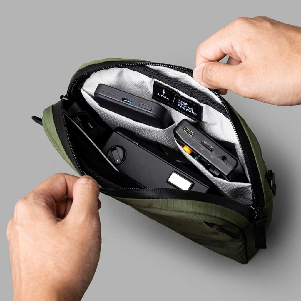 Durch einen belebten Flughafen hetzen, sich durch die Sicherheitskontrollen drängeln, das immer wieder auftauchende Abflug-Gate finden - eine Flughafenreise kann eine stressige Erfahrung sein, vor allem wenn man die wichtigen Dokumente und Geräte nicht zur Hand hat. Die elegante und durchdachte Flight Sling von Alpaka hilft Ihnen, im Chaos Ruhe zu finden. Sie hält alle benötigten Gegenstände zusammen, so dass Sie sich besser darauf konzentrieren können, durch die Sicherheitskontrolle zu kommen und den Flugsteig zu finden. Die Flight Sling Reisetasche ist mit einem Schnellverschluss ausgestattet und kann getragen werden, je nachdem, was für Sie am bequemsten ist. Sie verfügt über zahlreiche Innentaschen für eine bessere Organisation, wetterfeste Stoffe und genügend Platz für ein iPad Mini. Aber wir erwarten nichts anderes von Alpaka, der Marke, die seit der Einführung ihres ersten Produkts auf Kickstarter im Jahr 2016 für einige der zweckmäßigsten und am besten designten Rucksäcke, Taschen und Accessoires auf dem Markt gesorgt hat.