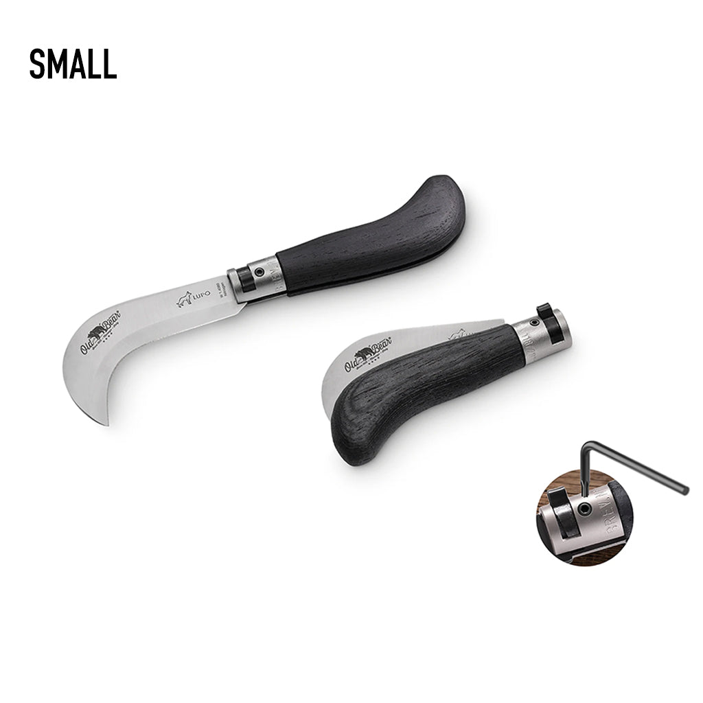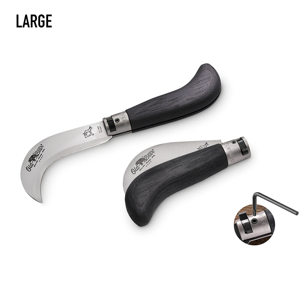 For those who prefer a more understated look, this Black Wood Pruner delivers the same hand-crafted Italian quality as the standard version, but with laminated black wood that doesn't show the dirt quite as readily. The curved blade makes short work of green stems and pruning duties, while the patented brass collar lock ensures safety and security in the hand. The nitrogen steel blade is highly resistant to corrosion – useful when you're working with plant sap and moisture all day. The curved profile is genuinely more efficient for cutting living wood than a straight blade, letting you make clean cuts that heal better. The black wood handle stands up to being shoved in pockets and knocked about. The Lupo collar lock secures the blade both open and closed without relying on springs. When you're putting force into cutting thick stems, that security matters. Whether you're managing an allotment, clearing trails, or keeping hedges in check, this does the job without fuss.