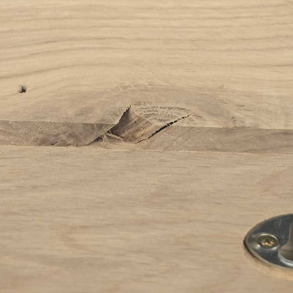 - Beschädigung auf der Rückseite (Knoten ist gebrochen)