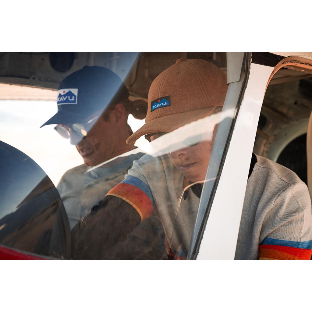 Hier ist eine Entstehungsgeschichte für Sie. Anfang der neunziger Jahre hatte der Skipper Barry Barr die Nase voll davon, billige Trucker-Mützen zu tragen, die ihm bei Stürmen vom Kopf gerissen wurden, um sie nie wieder zu sehen. Er beschloss, eine besonders haltbare Mütze zu bauen, die bei jedem Wetter nicht weggeweht werden konnte, und nähte das Gurtband einer Teva-Sandale um den Kopf herum. Es stellte sich heraus, dass seine "Strapcap" ein Hit war, und KAVU war geboren.