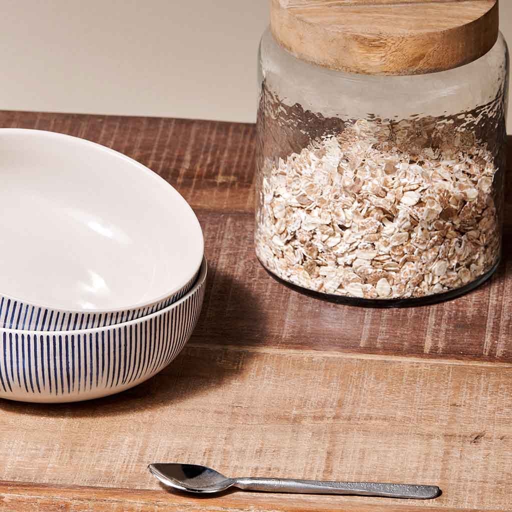 - Vorratsgläser aus klarem Recyclingglas mit strukturierter Oberfläche