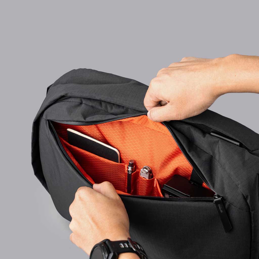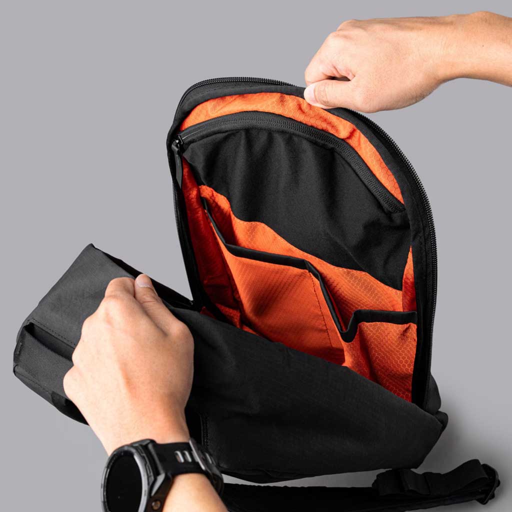 - Innen: 200D Blood Orange Honeycomb Ripstop Nylon Futter