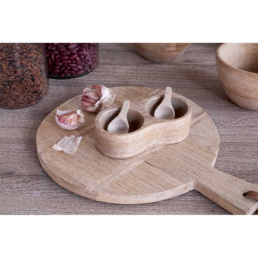 - Salz- und Pfefferstreuer aus geschnitztem Mangoholz mit passenden Schöpflöffeln