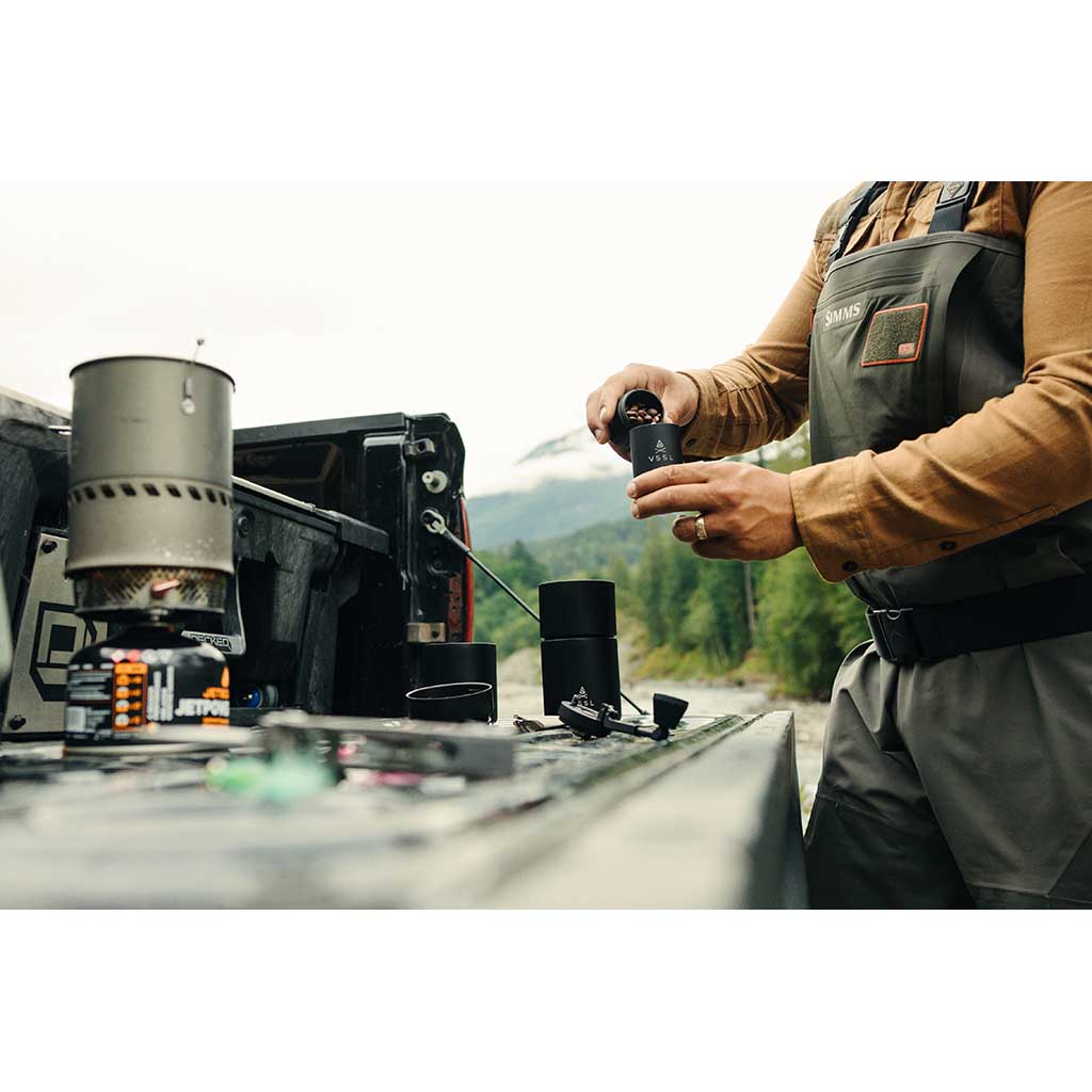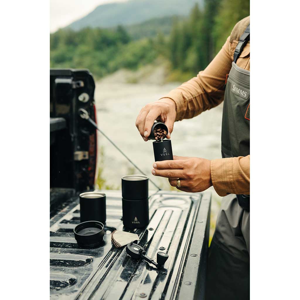 VSSL wurde in den Hinterwäldern von Saskatchewan, Kanada, geboren, wo der Gründer Todd Weimer seine Jugend damit verbrachte, DIY-Überlebenskits in ausgehöhlten PVC-Rohren zusammenzubauen. Dieser Geist des einfallsreichen Abenteuers hat ihn nie verlassen - doch heute geht es bei VSSL weniger um Notfallausrüstung als vielmehr um die Aufwertung alltäglicher Rituale in der Wildnis. Die neue Mission? Besseren Kaffee im Freien zu brauen. Und ehrlich gesagt, VSSL ist auf dem richtigen Weg.