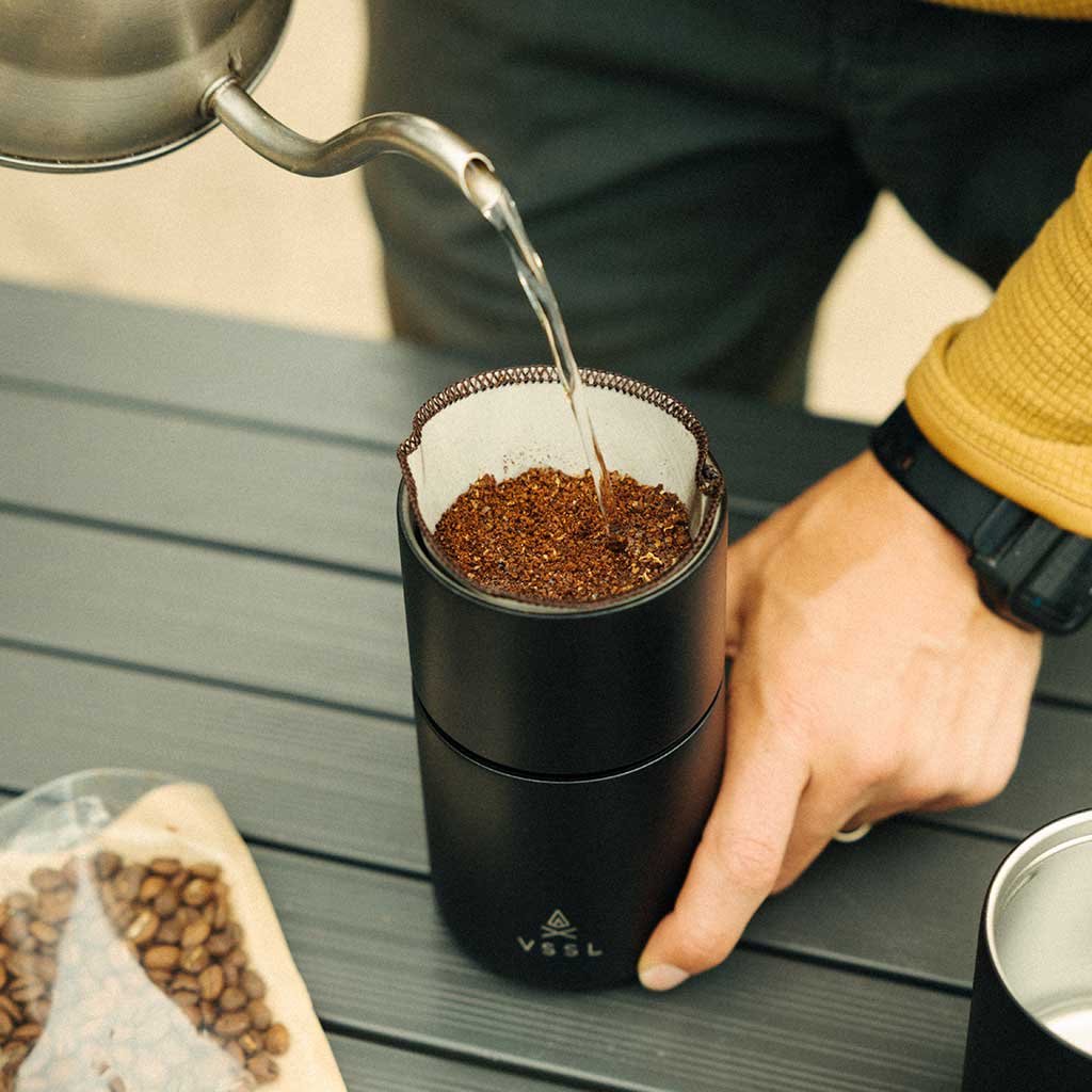 Das sich ständig weiterentwickelnde Sortiment an präzisionsgefertigter, abenteuertauglicher Kaffeeausrüstung ist dafür gemacht, Ihr Campgebräu von gerade noch anständig zu wirklich außergewöhnlich zu machen. Wir sprechen hier von Mühlen, die in den Rucksack passen und dennoch barista-taugliche Ergebnisse liefern, von ineinandersteckbaren Pour-over-Sets, die sich wunderbar zusammenfügen lassen und wie ein Zauberspruch funktionieren, und von Bechern, die für Komfort, Geschmack und einen frostigen Start in den Tag sorgen. Diese Ausrüstung ist für den echten Outdoor-Einsatz gemacht - ein richtiges, strapazierfähiges Set, das für die Ewigkeit gebaut ist. Entwickelt für den perfekten Kaffee, selbst wenn Sie drei Tage auf dem West Highland Way unterwegs sind oder sich in einer windigen Hütte aufbrühen. Denn VSSL hat verstanden, dass eine gute Tasse Sie nicht nur auf den Tag einstimmt. Sie macht den Moment aus. Und wenn die Aussicht so gut ist, sollte es das Gebräu auch sein.