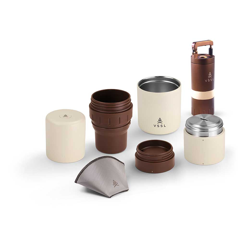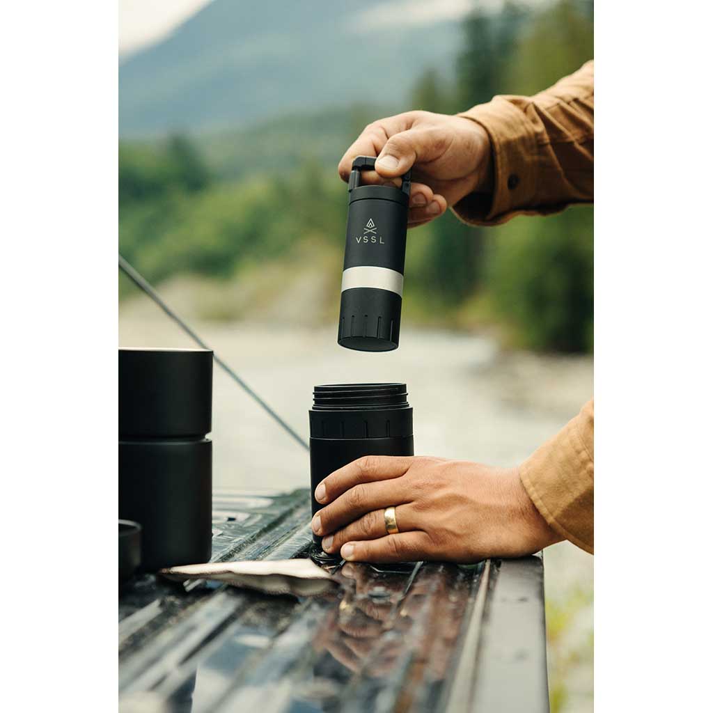• VSSL wurde in den Hinterwäldern von Saskatchewan, Kanada, geboren, wo der Gründer Todd Weimer seine Jugend damit verbrachte, DIY-Survival-Kits in ausgehöhlten PVC-Rohren zusammenzubauen. Dieser Geist des einfallsreichen Abenteuers hat ihn nie verlassen - aber heute geht es bei VSSL weniger um Notfallausrüstung als vielmehr um die Aufwertung alltäglicher Rituale in der Wildnis. Die neue Mission? Besseren Kaffee im Freien zu brauen. Und ehrlich gesagt, VSSL ist auf dem richtigen Weg.
