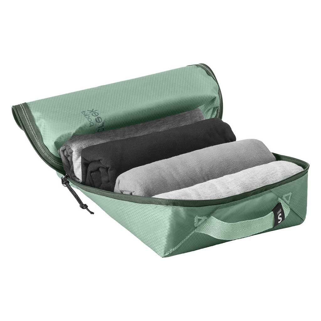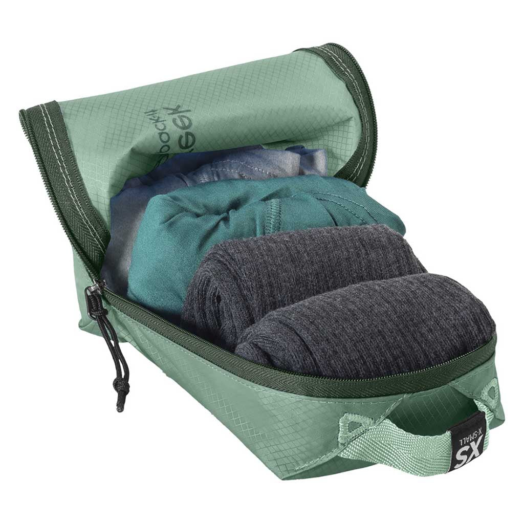 Wenn Sie längere Zeit unterwegs sind, ist es unvermeidlich, dass Ihre Kleidung und Ausrüstung irgendwann eine homogene Masse in Ihrer Tasche bildet. Saubere Kleidung vermischt mit schmutziger Kleidung, Toilettenartikel in fünf verschiedenen Taschen und gelegentlich etwas Schmutz oder Staub. Die Isolate Cubes von Eagle Creek sind da, um den Tag zu retten und einen Hauch von Marie Kondo in Ihr Gepäck zu bringen. Das Set besteht aus 3 verschiedenen Größen, so dass Sie Unterwäsche, Oberteile und sperrige Gegenstände voneinander trennen können, und ist aus einem superleichten, robusten und wasserabweisenden Material gefertigt. Dank des abgewinkelten Reißverschlusses lassen sich die Kleidungsstücke leichter stapeln als quetschen, und die transparente Oberfläche macht es einfach zu erkennen, was sich darin befindet.