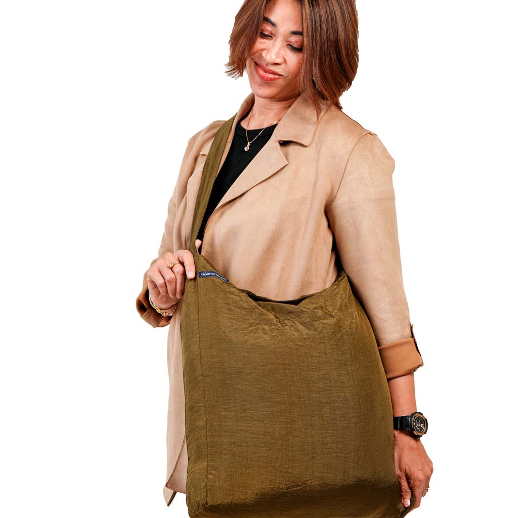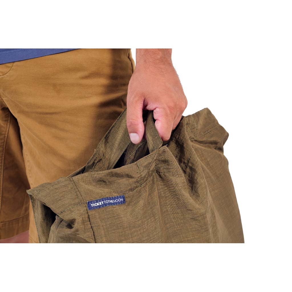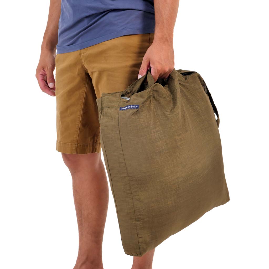 Ticket to the Moon hasst Abfall. Und zwar so sehr, dass sie sich weigern, welchen zu produzieren. Jedes Stück Stoff, das nach der Herstellung ihrer Hängematten, Steppdecken und Tarps übrig bleibt, wird gesammelt und gelagert, bis ihnen eine gute Verwendung dafür einfällt. Und genau das ist hier der Fall: Die Eco Bag von Ticket to the Moon ist ein alltägliches Accessoire, das nur aus Stoffresten und Materialien besteht, die sonst auf der Mülldeponie landen würden. Aber das bedeutet nicht, dass diese Tasche Müll ist. Die Eco Bag ist aus demselben strapazierfähigen Fallschirmnylon gefertigt, aus dem auch die Hängematten bestehen. Sie ist eine robuste, große und elegante Umhängetasche, die den Platz einnimmt, den sonst Einweg-Plastiktüten einnehmen würden. Sie ist in drei Größen erhältlich. Wählen Sie einfach die für Sie passende Größe aus - und freuen Sie sich jedes Mal, wenn Sie sie sich über die Schulter werfen, um unserem Planeten einen Gefallen zu tun.
