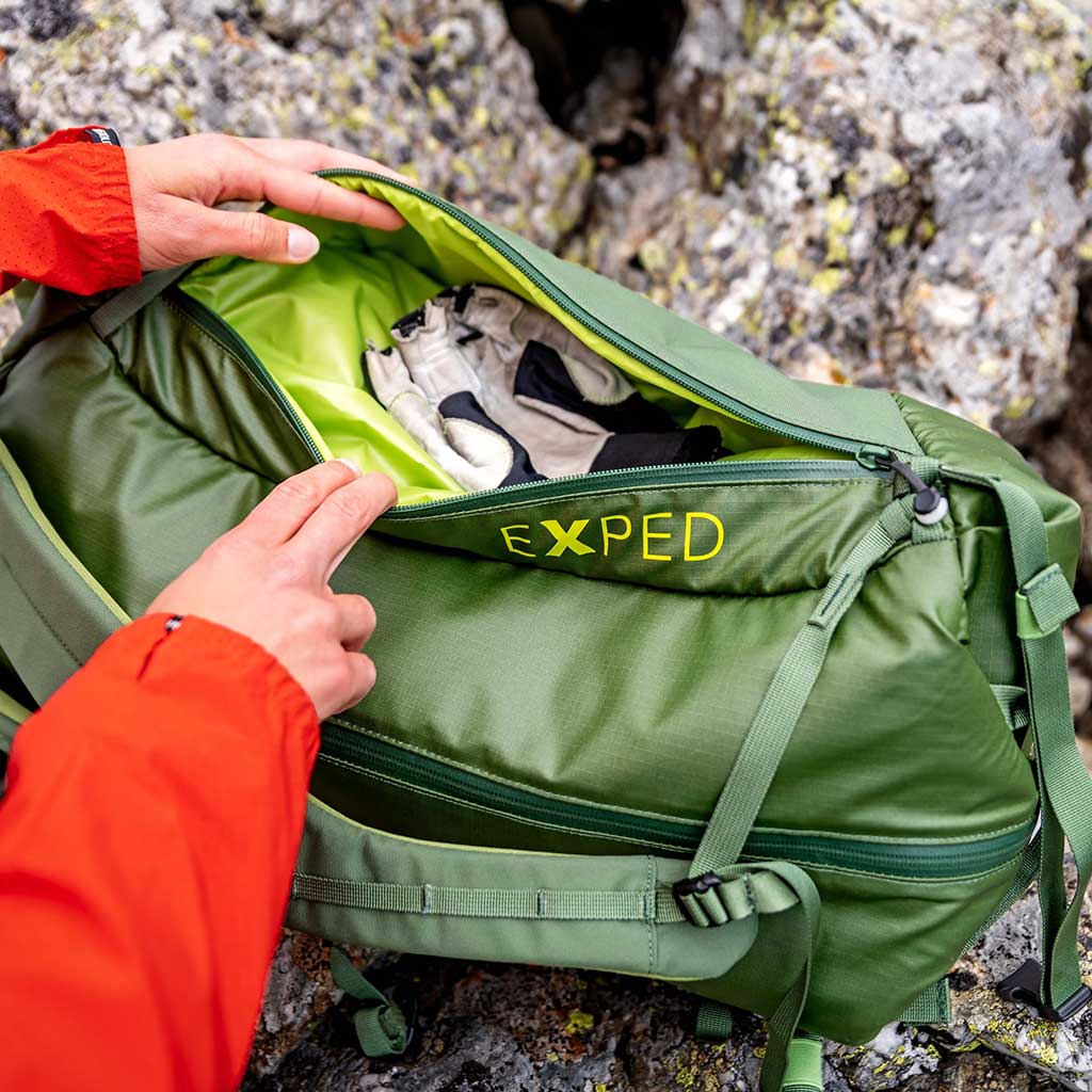 Es ist selten, dass man einen vielseitig einsetzbaren Rucksack findet, der tatsächlich zwei Aufgaben erfüllen kann. Der Radical 30 von EXPED erfüllt diese Aufgabe: Er ist ein richtiger Rucksack, wenn Sie die Hände frei haben müssen, und ein geräumiger Seesack, wenn Sie Ihre Ausrüstung in den Kofferraum Ihres Vans packen wollen. Mit seinen 30 Litern hat er die perfekte Größe für ein Wanderwochenende in den Seen, einen Ausflug in die Kletterhalle oder einen Flug für einen Städtetrip. Die schön gepolsterten Schultergurte lassen sich im Duffle-Modus vollständig in den Seitentaschen verstauen, und der extralange Reißverschluss in der Mitte bedeutet, dass Sie an Ihre Sachen herankommen, ohne erst alles andere auspacken zu müssen. Der Rucksack aus recyceltem Ripstop-Nylon ist wasserabweisend und widerstandsfähig genug für die tägliche Beanspruchung, aber auch leicht genug, um ihn täglich tragen zu können. Sie ist ein maßgeschneiderter Begleiter für alle, die verstehen, dass "radikal" bedeutet, die Grundlagen zu ändern - denn diese Tasche ändert grundlegend, wie Sie über das Tragen Ihrer Ausrüstung denken.