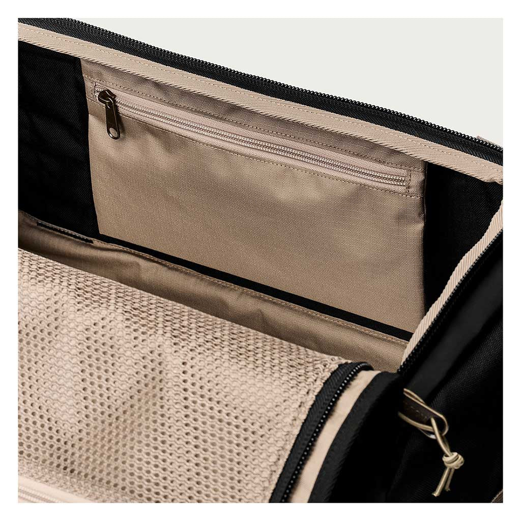 • Netztasche mit Reißverschluss in der oberen Klappe