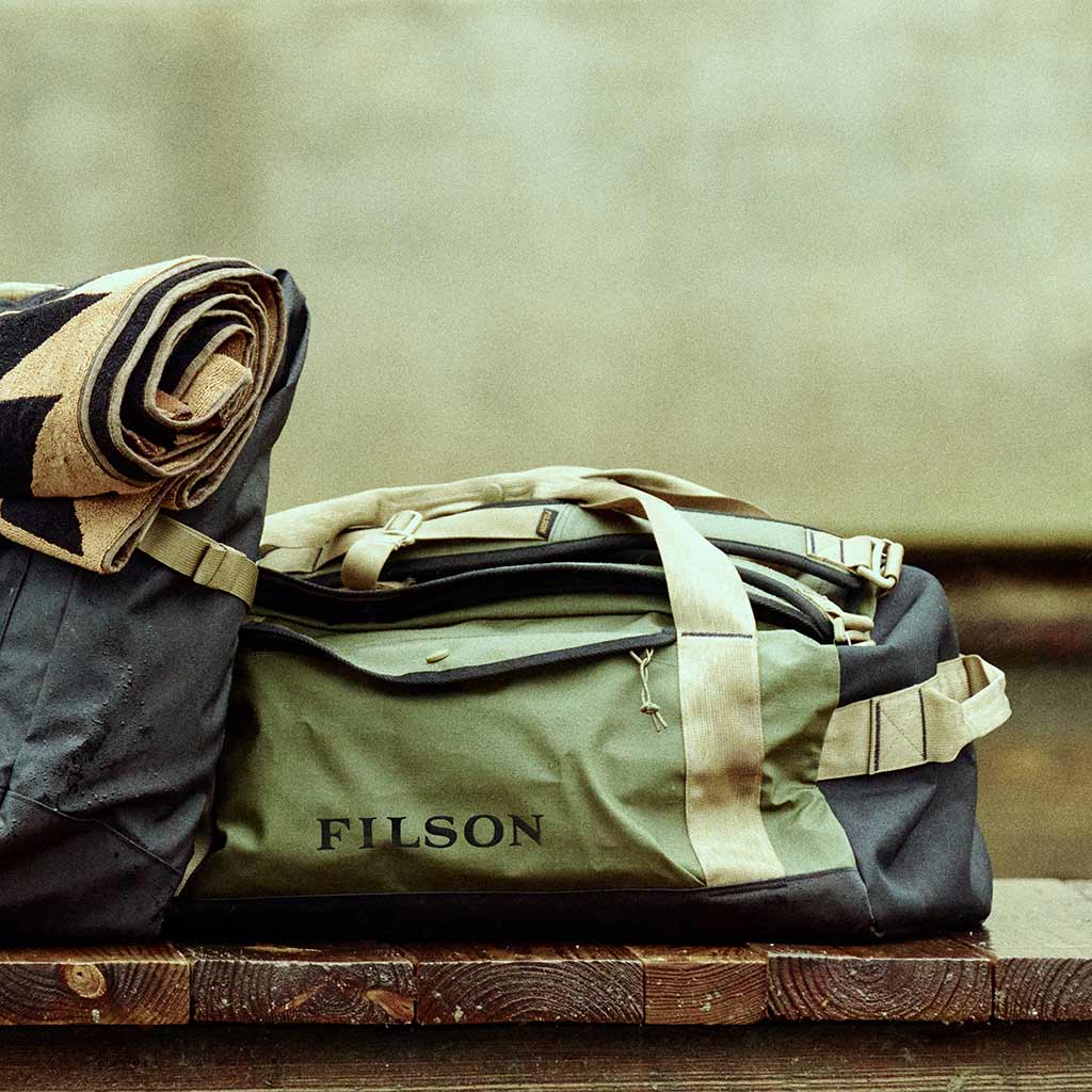 Ihre Reisetasche muss Ihre Ausrüstung zuverlässig schützen, wo auch immer Ihre Abenteuer Sie hinführen - und es gibt kaum etwas Widerstandsfähigeres als die 50 Liter fassende Scout Duffel von Filson. Die Scout Duffel ist aus robustem, TPU-beschichtetem Polyester gefertigt, das eine beeindruckende Wasserbeständigkeit bietet. Die U-förmige Klappe an der Oberseite ermöglicht einen bequemen Zugang zum Hauptfach, mit Innentaschen und einer Sturmklappe zum Schutz des Reißverschlusses. Mit den bequemen, gepolsterten Schultergurten lässt sich die Tasche wie ein Rucksack tragen. Für eine stromlinienförmige Tasche kann man sie auch abnehmen und die Gurtbandgriffe und Greifschlaufen verwenden. Das Fassungsvermögen von 50 Litern ist genau richtig für längere Reisen - und mit mehr als einem Jahrhundert Erfahrung in der Ausrüstung von Expeditionen und Abenteurern im Hinterland können Sie sich auf die berühmte Filson-Verarbeitungsqualität verlassen.