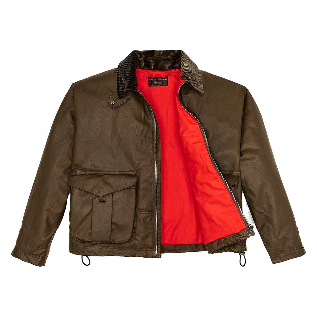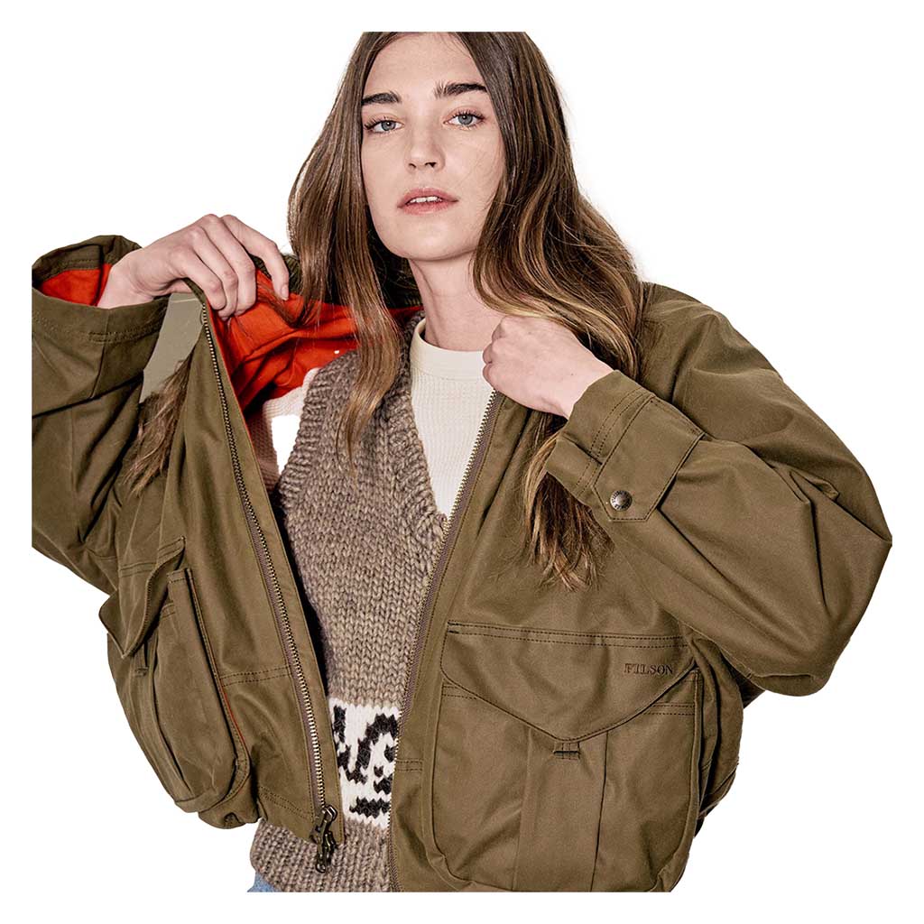 Die Women's Short Work Jacket basiert auf einer alten Fischerjacke aus den Archiven von Filson. Sie wurde aus geöltem Shelter Cloth gefertigt, das leichter und flexibler ist als das berühmte, schwere Tin Cloth, und hat einen kürzeren, hüftlangen Schnitt, der ihr einen moderneren Look verleiht. Abgesehen davon wurden jedoch alle praktischen Details beibehalten, die das ursprüngliche Design so beständig gemacht haben. Die nahtlose Schulterkappenkonstruktion verhindert, dass Wasser eindringen kann, und die großen, erweiterbaren Cargotaschen bieten Platz für alle wichtigen Utensilien und mehr. Die gesamte Jacke ist mit dem gleichen weichen, gebürsteten Baumwollflanell gefüttert, der auch bei den beliebten Alaska-Führerhemden zum Einsatz kommt, und hat ein buntes Futter im Jagdstil, das beim Öffnen des Reißverschlusses einen schönen Akzent setzt. Der mit einem Kordelzug verstellbare Saum ist eine Funktion, die von der Archiv-Jacke übernommen wurde und mit der Sie die Jacke bei aufkommendem Wind enger stellen können. Das ist das, was Filson am besten kann - traditionelle Arbeitskleidung in eine moderne Silhouette zu verwandeln.