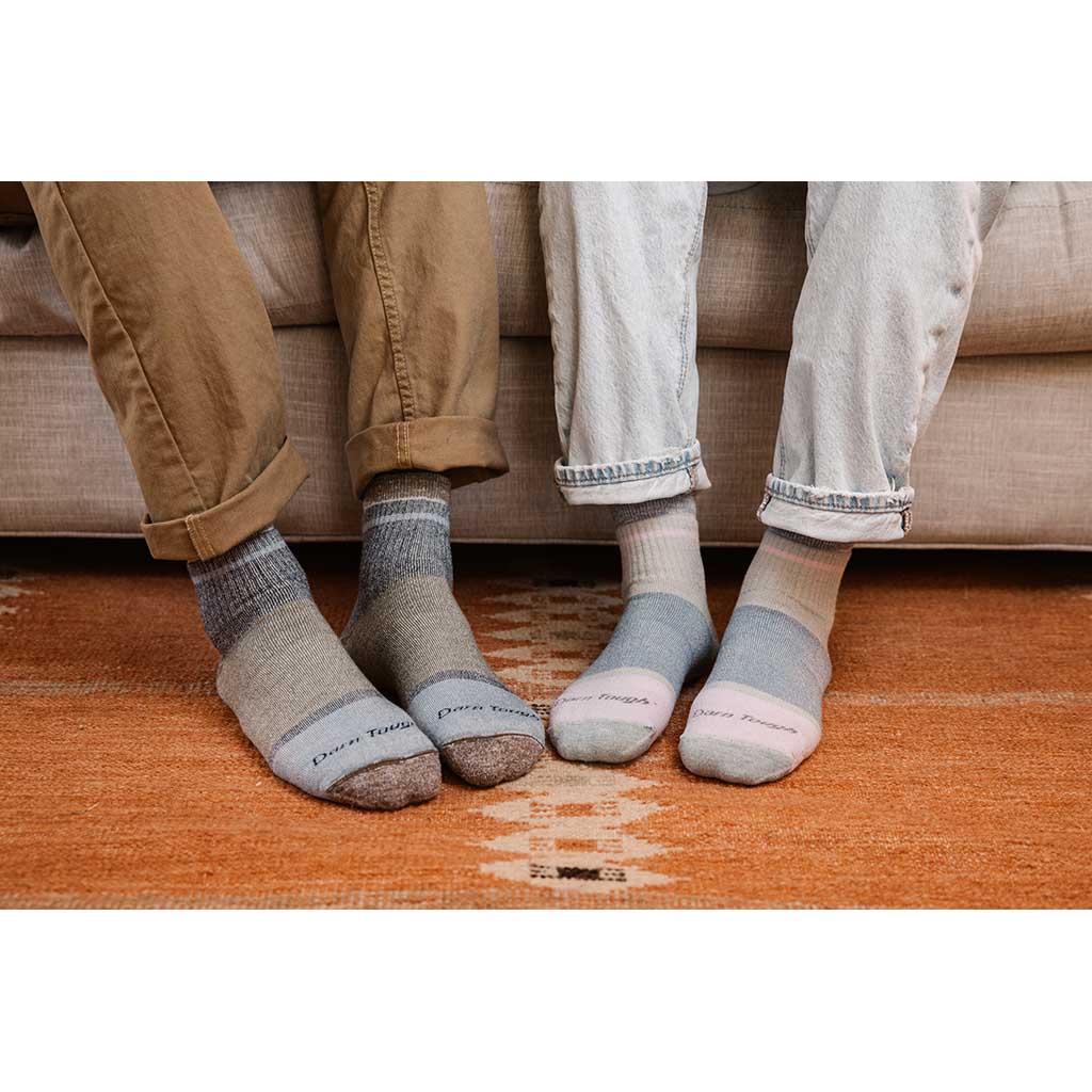 Nach einer langen Wanderung durch den Wald laden die Shorty dazu ein, innezuhalten, durchzuatmen und es sich gemütlich zu machen. Mit ihrer dicken Polsterung und der extrem weichen Merinowollmischung sind diese Socken wie ein Lieblingspullover - nur für Ihre Füße. Kurz in der Länge, aber groß in der Bequemlichkeit, sind sie perfekt, um in einer frostigen Hütte zu wandern, sich am Feuer zurückzulehnen oder einfach die Kunst der Stille zu meistern. Sie sind warm, aber atmungsaktiv, plüschig, aber strapazierfähig und wurden für die langsamere, sanftere Seite des Outdoor-Lebens entwickelt - wenn die Stiefel ausgezogen sind, der Wasserkocher läuft und der einzige Plan, der übrig bleibt, ist, absolut nichts zu tun. Ein bisschen Luxus für müde Füße, mit all den technischen Vorzügen, die man von Darn Tough erwartet.