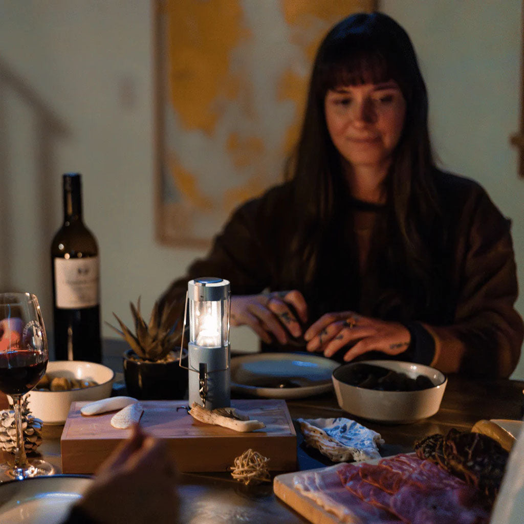 Es geht nichts über den sanften Schein und die Wärme von Kerzenlicht. Es macht jeden Ort gemütlich und einladend, egal ob man in der Wildnis zeltet oder einfach nur einen Abend im Garten verbringt. Die kultige Original Candle Lantern von UCO ist aus leichtem, aber robustem eloxiertem Aluminium gefertigt und wird mit einer einzigen Kerze betrieben. Die Kerze ist in einem stabilen Metallrahmen mit einem Glaskamin untergebracht und lässt sich leicht anzünden. Während sie brennt, schiebt das federbetriebene Rohr die Kerze nach oben und sorgt so für eine zuverlässige, konstante Flamme. Ein Sichtfenster zeigt schnell die verbleibende Brenndauer an. Trotz ihrer geringen Größe spendet sie bis zu 9 Stunden lang Licht und Wärme und ist damit der perfekte kleine Begleiter für das Leben im Freien.