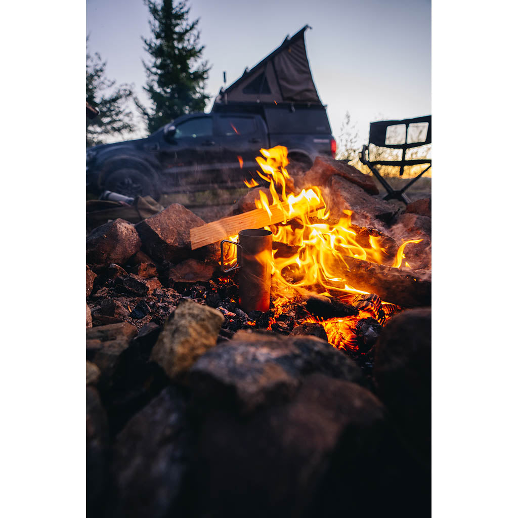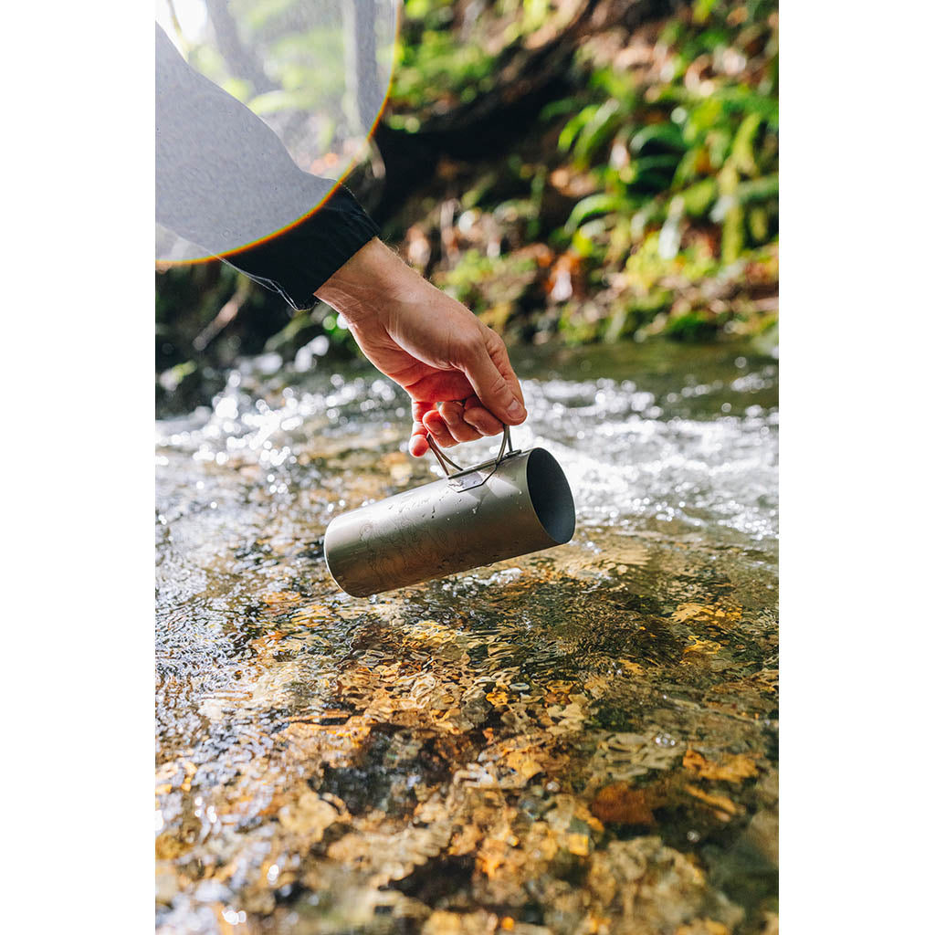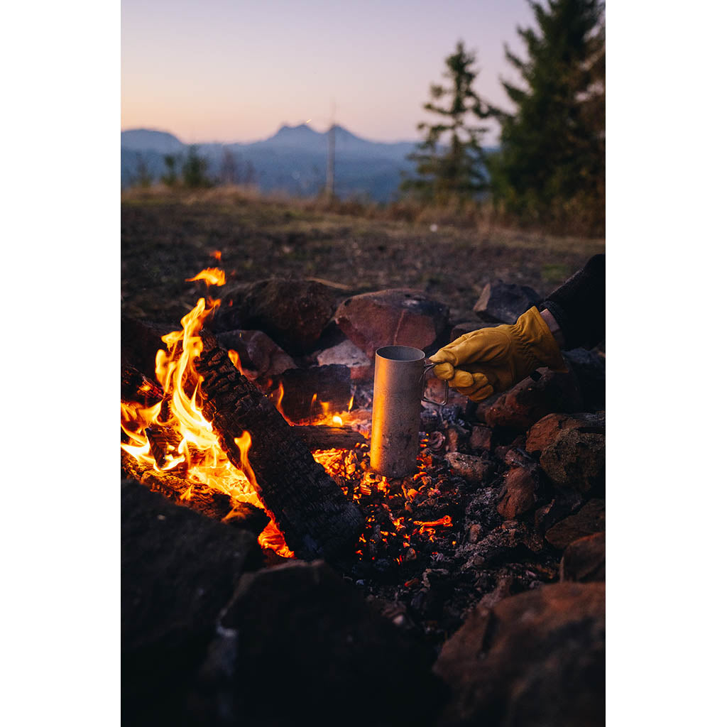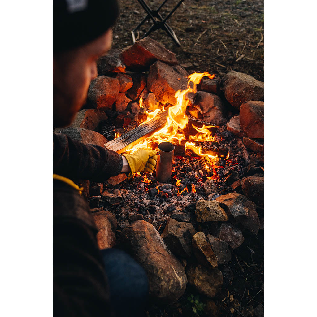 - Äußerer Ti Cup kann zum Erhitzen von Wasser und zum Kochen von Essen in der Nähe eines Feuers oder auf einem Campingkocher verwendet werden