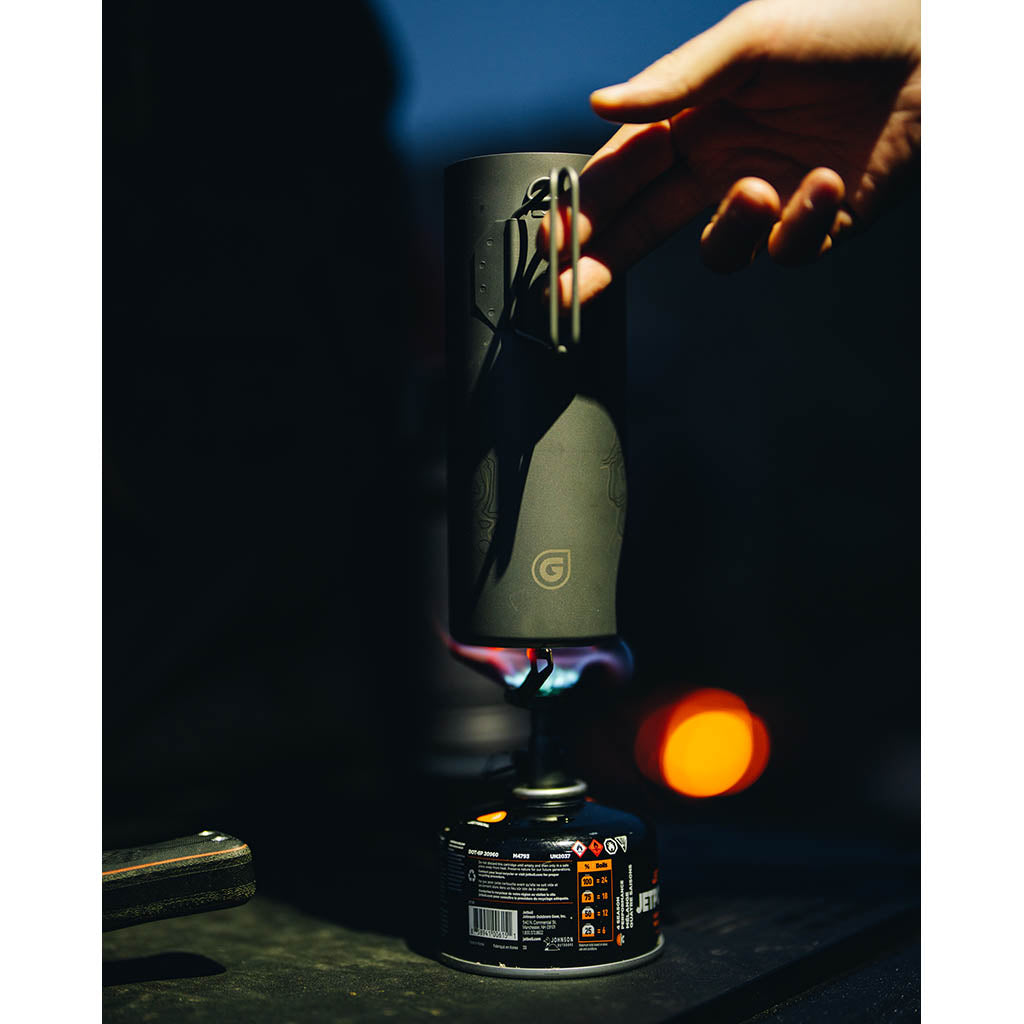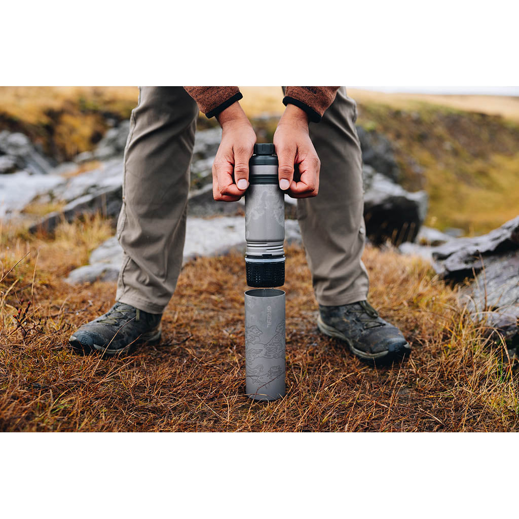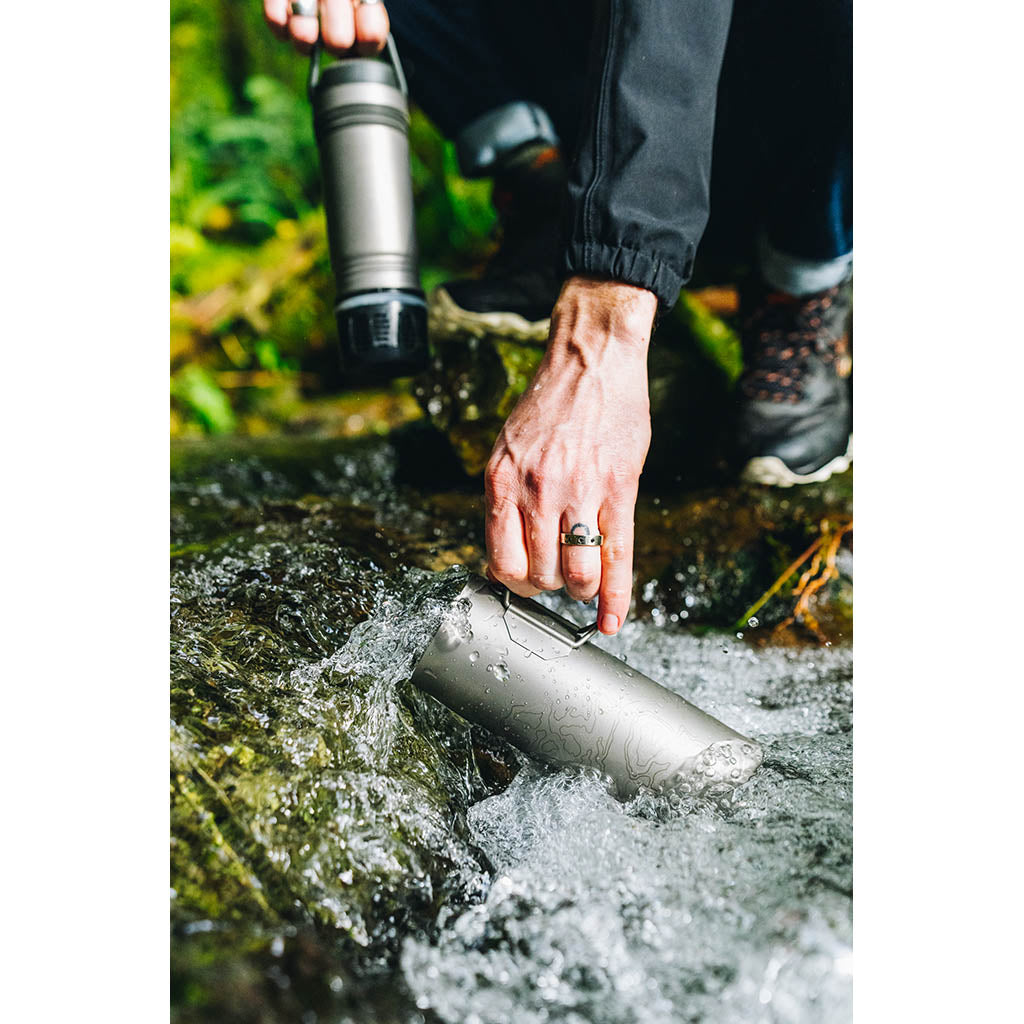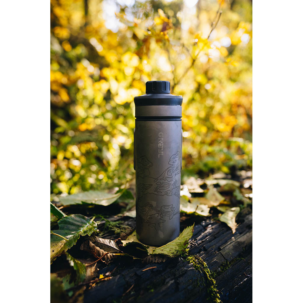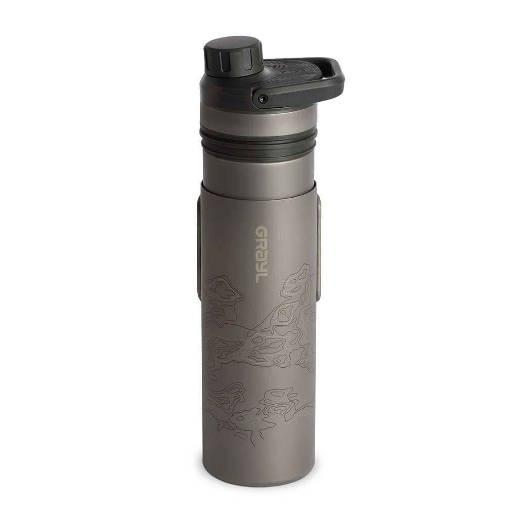 - Lasergravur mit mehrfarbigem Grayl-Topo-Schriftzug
