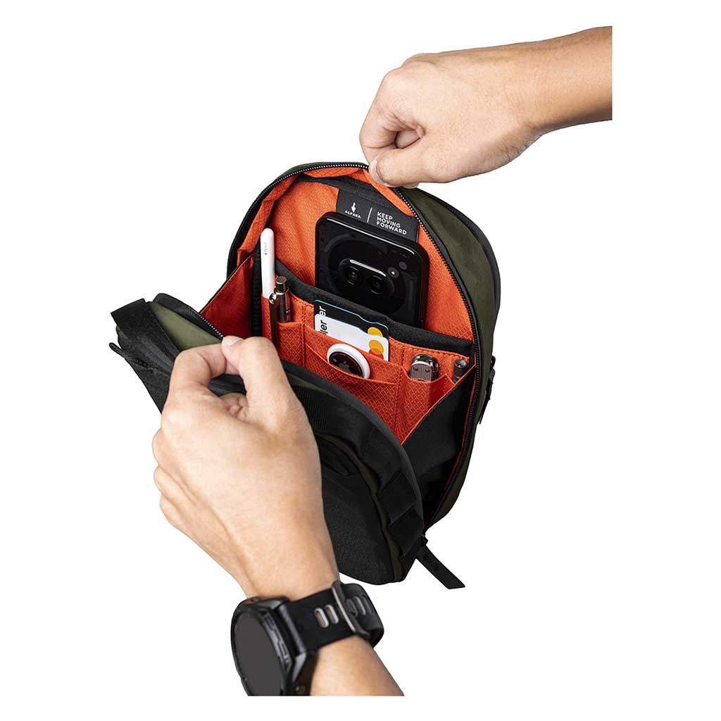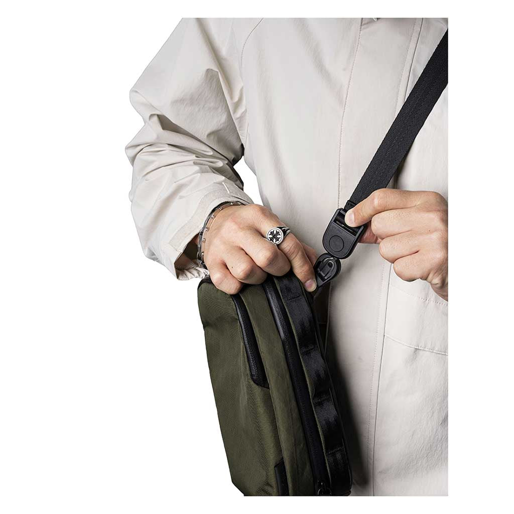 Der Metro Sling Max weiß, dass Abenteuer in der Stadt eine andere Art der Vorbereitung erfordern. Er ist nicht einfach nur eine größere Version eines Standardtragegurts - er wurde sorgfältig entwickelt, um den einzigartigen Anforderungen der Erkundung von Städten gerecht zu werden. Ganz gleich, ob Sie sich durch belebte Straßen bewegen, in Cafés einkehren oder spontan beschließen, ein interessantes Viertel zu erkunden - dieser Trageriemen passt sich Ihrem Tempo an. Dank des erweiterten Fassungsvermögens können Sie Ihr iPad mini, Over-Ear-Kopfhörer, Ihre Kamera und all die kleinen Dinge mitnehmen, die den Unterschied zwischen einem guten und einem großartigen Tag ausmachen. Durch die aufrechte Ausrichtung liegt alles flach an der Seite und die Reißverschlüsse befinden sich auf der perfekten Höhe für einfachen Zugriff. Er ist der perfekte Begleiter für alle, die glauben, dass man eine Stadt am besten kennenlernt, wenn man sich in ihr verliert.