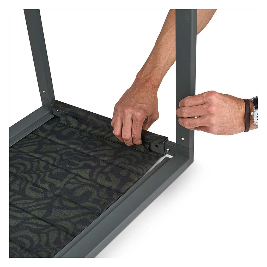 - Die halbstarre Tischplatte bietet Stabilität für die Verwendung als Tischplatte