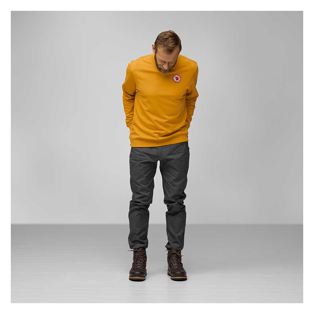 A hearty organic-cotton crew with a woven 1960 badge that nods to Fjällräven’s beginnings. The fit is regular, the seams are flat-locked for comfort, and the rib trims keep warmth where you need it. Ideal for cool evenings at camp or slow Sundays at home.