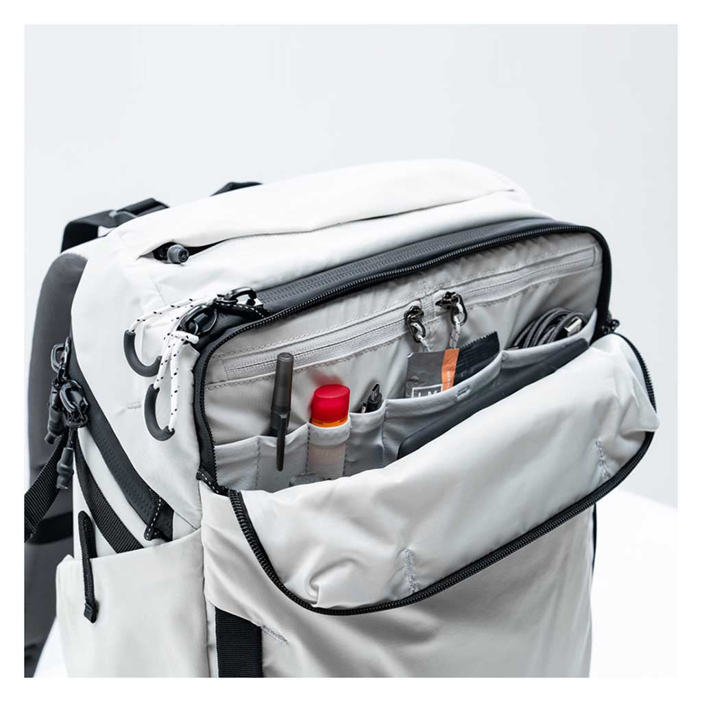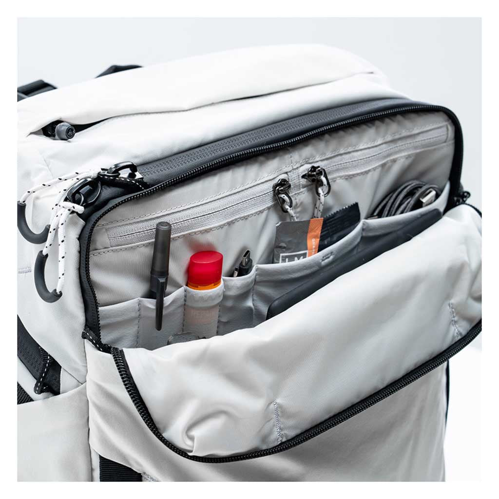 • Zweifacher Zugang zum Hauptfach über Clamshell-Reißverschluss oder Öffnung von oben
