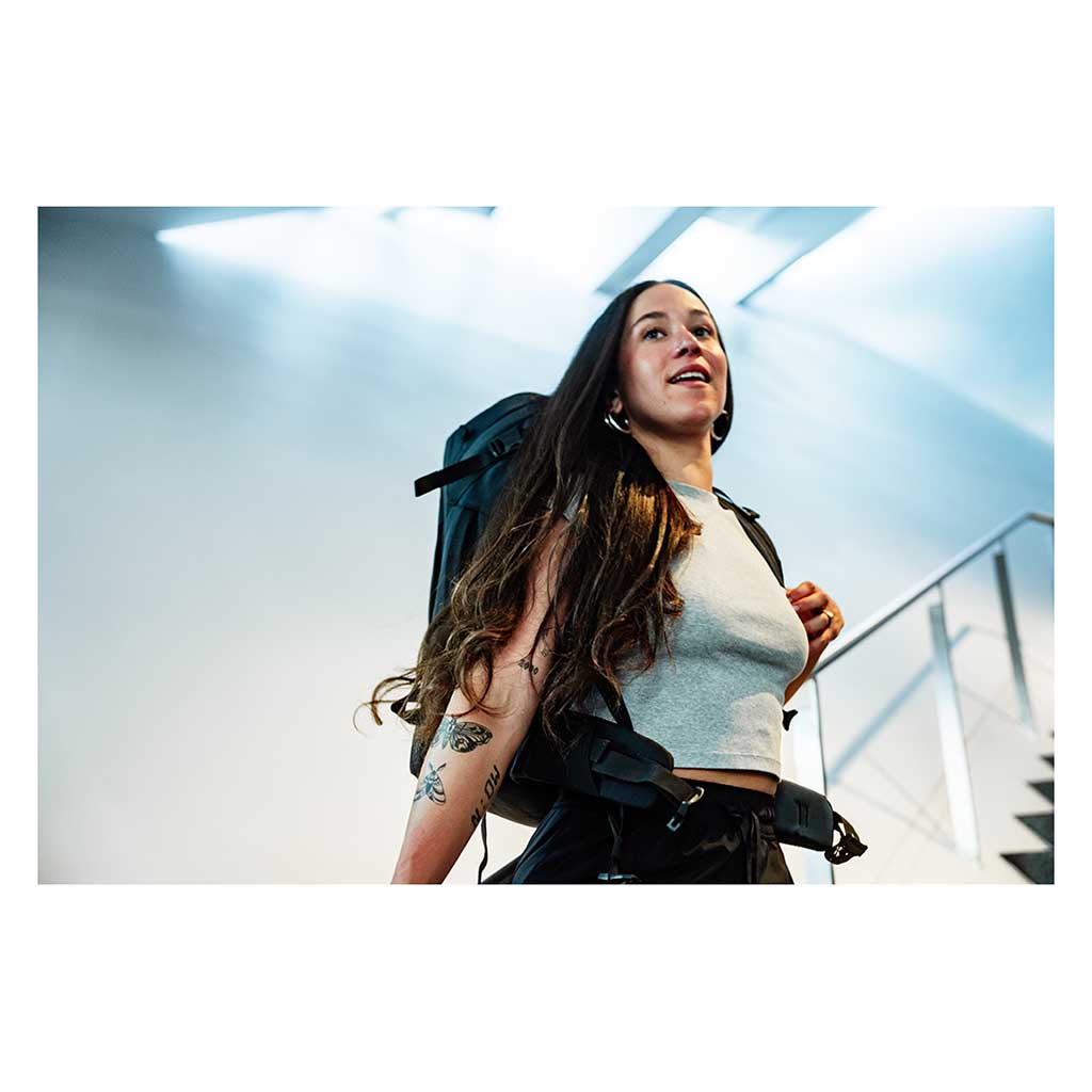 • Gepolstertes, atmungsaktives Rückenpanel und Schultergurte mit Sternumgurt und Lasthebern