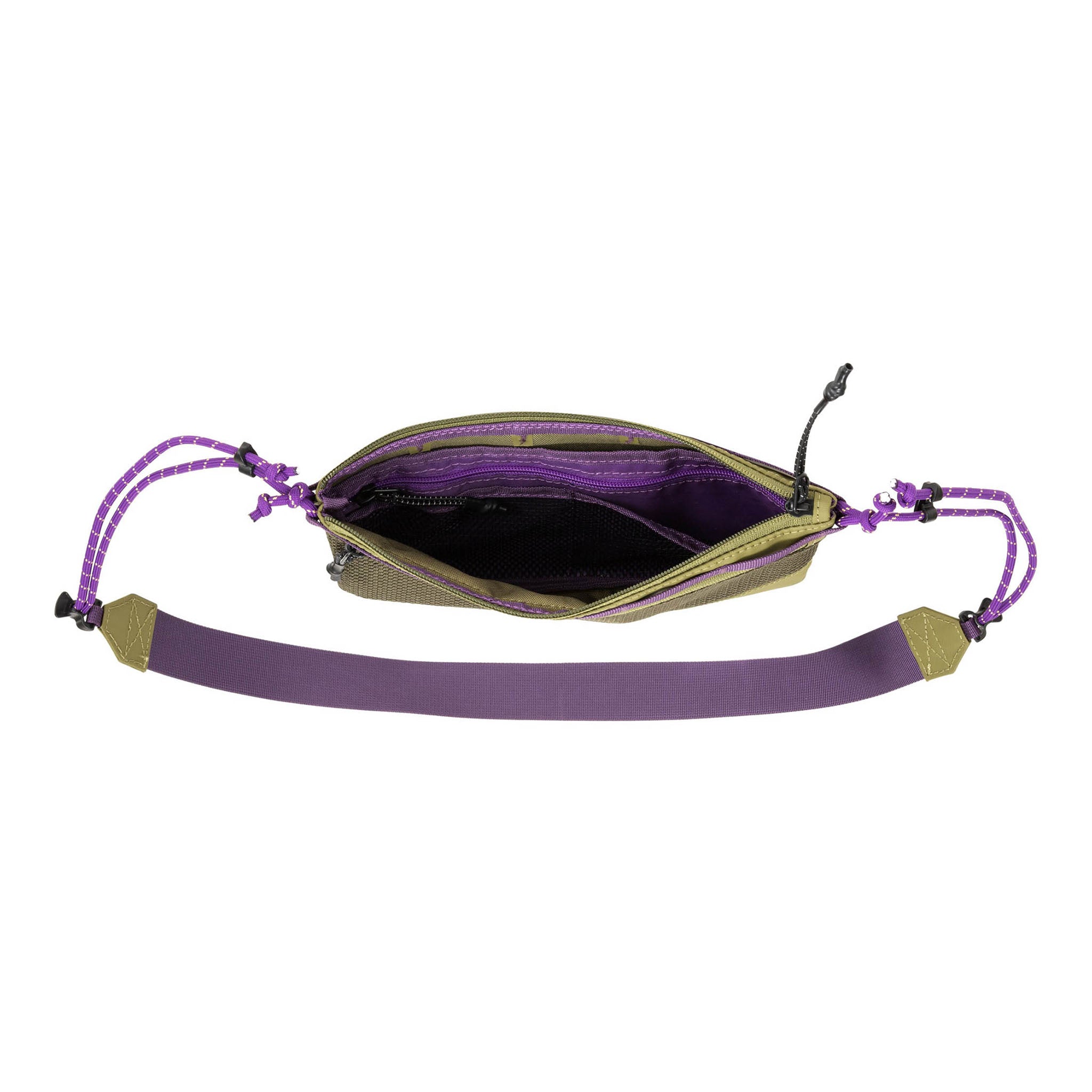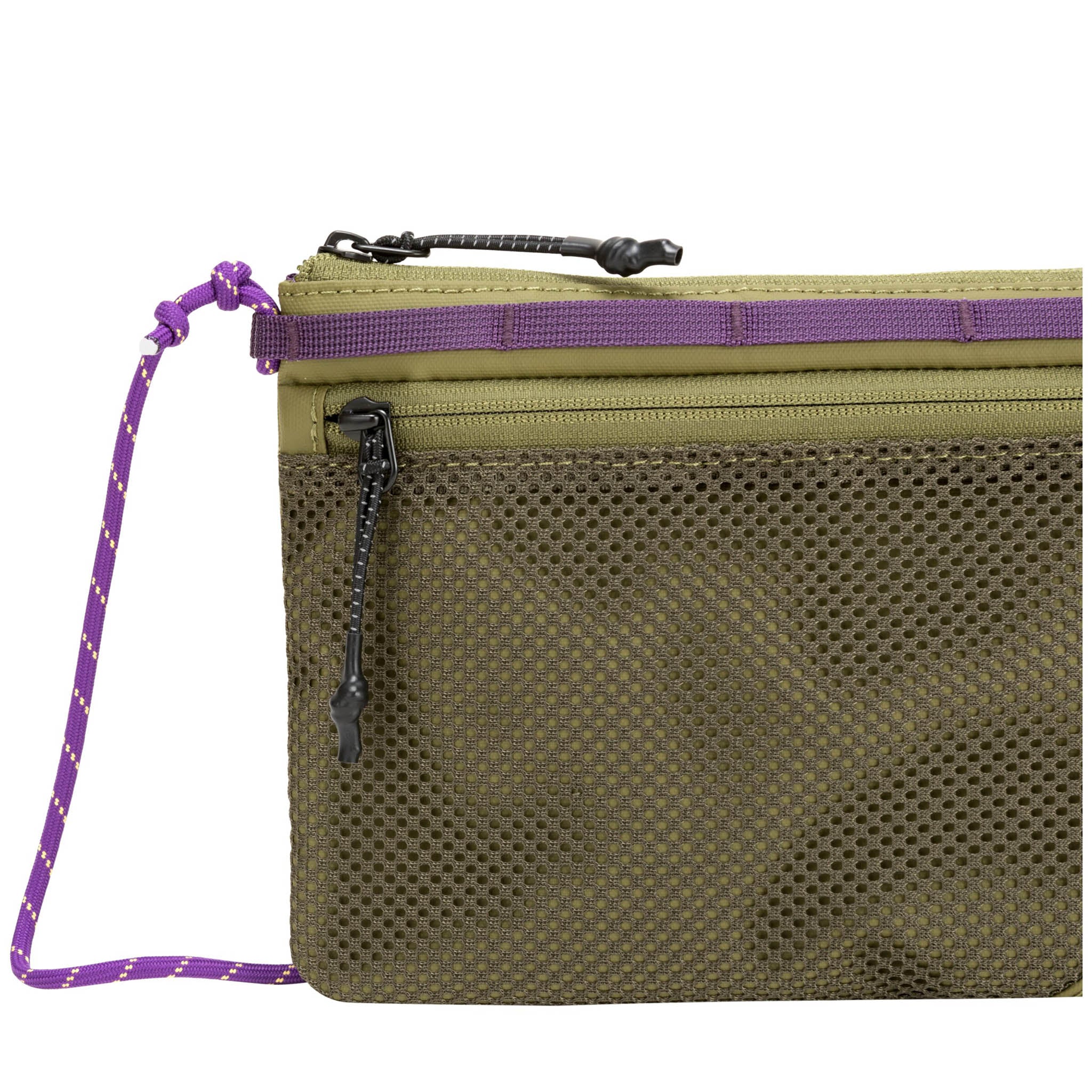 • Adjustable rope crossbody strap with webbing shoulder panel
