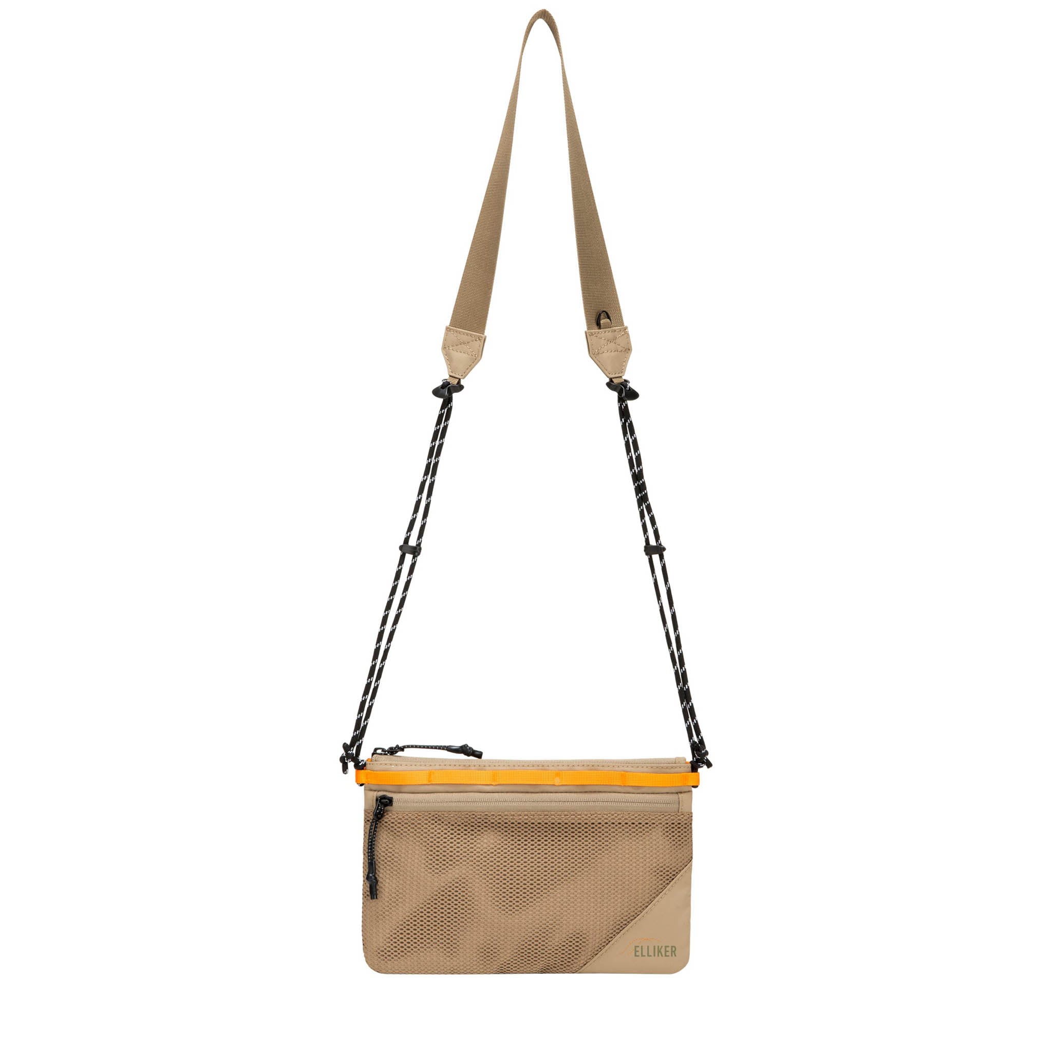 Be free of the big bag. How? Sacoche. Bosh. No, we didn't know what one was either. Turns out it's a sleek little mini-satchel that you can sling across your body to carry your town or travel essentials – sort of like an extra coat pocket. The Elliker Caley is a perfect example. It weighs only 140g and carries a litre of stuff, which is everything you actually need, when you actually stop to think about it: phone, cards, keys, a snack, some cash. Done. The zip-top opening seals it. The zip front mesh pocket gives you somewhere visible for your travelcard or phone. The adjustable rope crossbody strap sits well over a shoulder or across a chest. Daisy-chain webbing on the front and rear means you can clip it to a pack strap when it's not being worn solo. The 100% recycled 600D polyester with waterproof PU coating means the Caley doesn't object to a bit of weather, and at PFC/PFAS-free, it's as clean as it is practical.