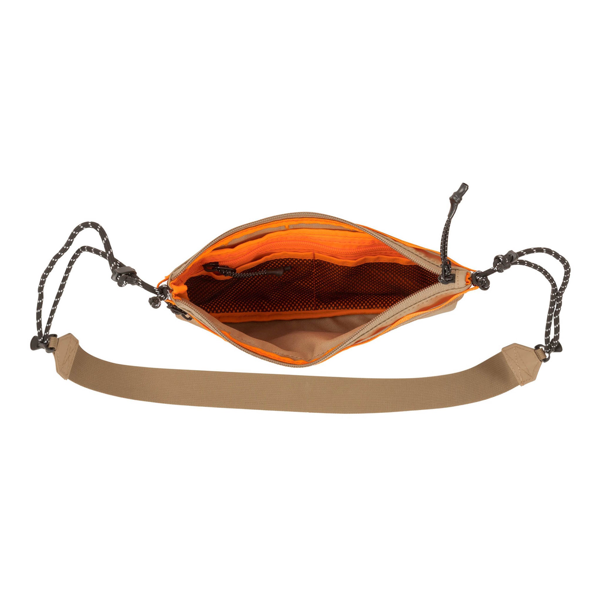 • Adjustable rope crossbody strap with webbing shoulder panel