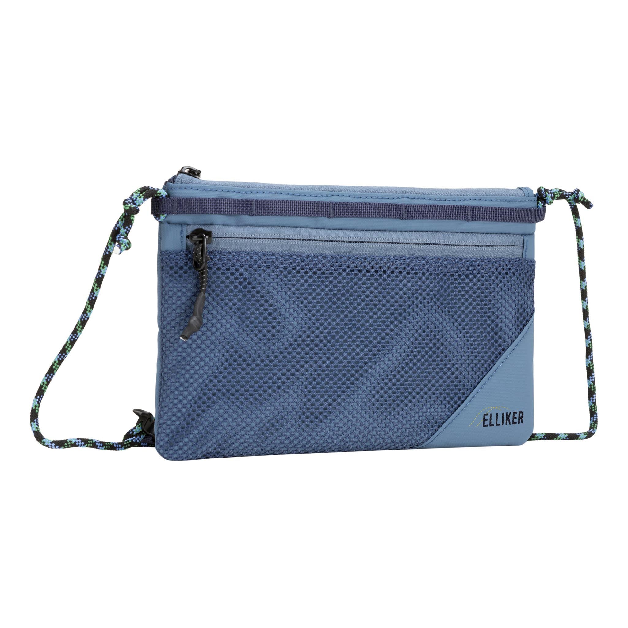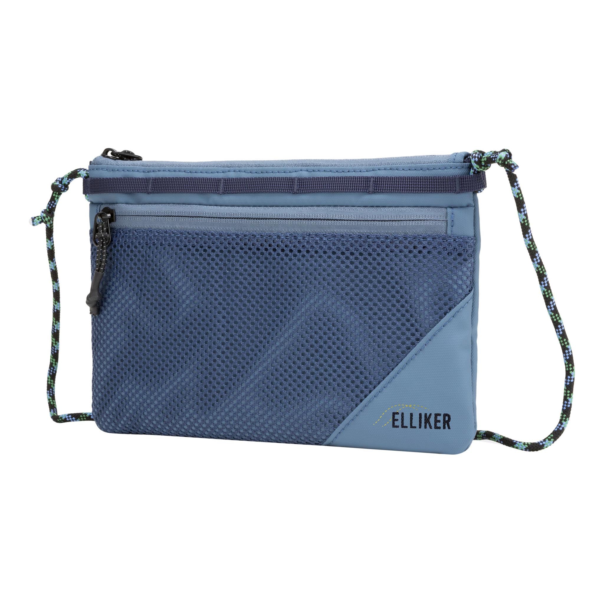 Be free of the big bag. How? Sacoche. Bosh. No, we didn't know what one was either. Turns out it's a sleek little mini-satchel that you can sling across your body to carry your town or travel essentials – sort of like an extra coat pocket. The Elliker Caley is a perfect example. It weighs only 140g and carries a litre of stuff, which is everything you actually need, when you actually stop to think about it: phone, cards, keys, a snack, some cash. Done. The zip-top opening seals it. The zip front mesh pocket gives you somewhere visible for your travelcard or phone. The adjustable rope crossbody strap sits well over a shoulder or across a chest. Daisy-chain webbing on the front and rear means you can clip it to a pack strap when it's not being worn solo. The 100% recycled 600D polyester with waterproof PU coating means the Caley doesn't object to a bit of weather, and at PFC/PFAS-free, it's as clean as it is practical.