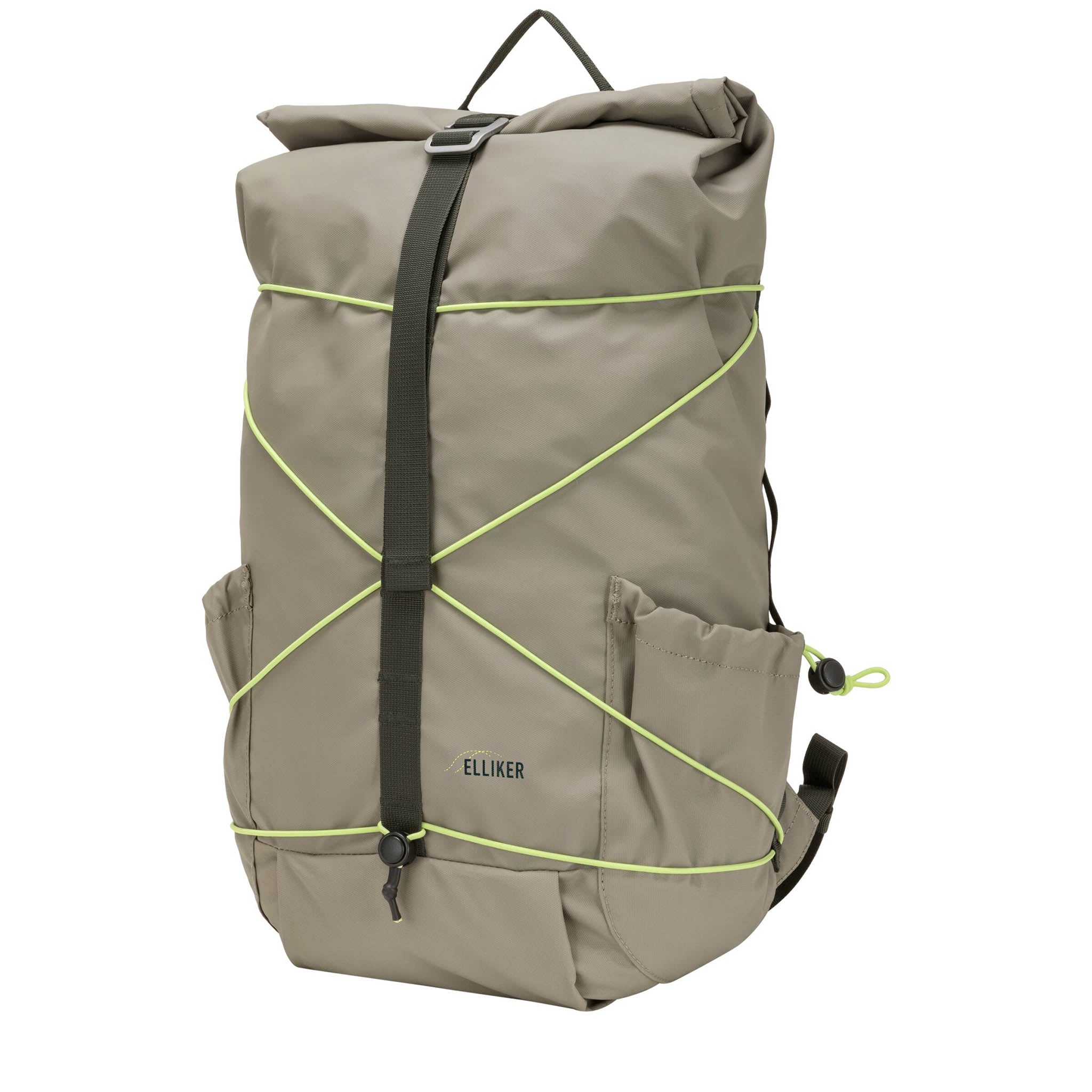 Some backpacks try to be everything. The Elliker Dayle just tries to be brilliant at what matters – and, to its considerable credit, it is. The Dayle is a 21-to-25-litre roll-top rucksack built for the kind of person who uses their bag hard and expects it to keep up. The roll-top studded opening seals down with an adjustable G-Clip fastening when the Yorkshire rain starts in earnest, keeping your kit dry without any faffing. When you need your laptop in a hurry, the external side zipper gives you straightforward access without disturbing everything else. The 100% recycled 600D polyester shell with waterproof PU coating does what it says: tough and weatherproof. External shockcord gives you somewhere to lash on a jacket when the pack is full. Internal pockets keep the small stuff organised. At 610g it's one of the lightest options in the Elliker lineup – which makes the extra 4 litres of unrolled capacity feel like a genuine bonus rather than a trade-off.