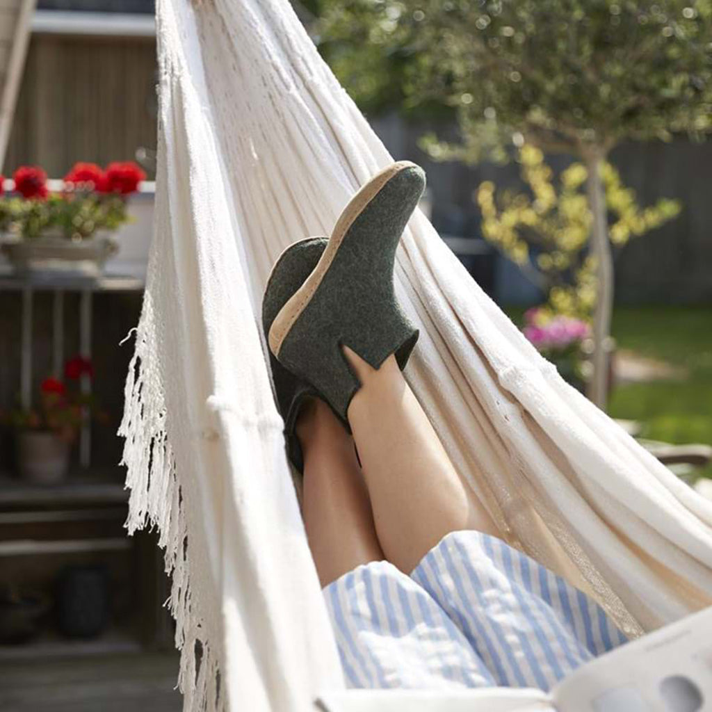 Die Glerups, die in den 1970er Jahren mit einem Liebesbrief an ihren Mann Ove begannen, sind der lebende Beweis dafür, dass eine gute Idee wirklich die Zeit überdauern kann. Von ihrem anfänglichen Plan, ein Paar bequeme und funktionelle Hausschuhe zu entwerfen, die ebenso gut für die Umwelt wie für Oves Füße sind, haben sich die Filzstiefel von Nanny Glerups zu einem bleibenden Zeugnis des dänischen Designs entwickelt. Sie sind einfach, umweltfreundlich und wurden zum nordischen Inbegriff der Nachhaltigkeit. Und wir sind mit an Bord und hissen die dänische Flagge für jeden Fuß, der jemals bis tief in die Nacht in einem Paar feuchter Synthetik-Wanderschuhe steckte. Wir wissen nämlich ein bisschen Komfort im Camp zu schätzen - obwohl wir selbst begeisterte UL-Abenteurer sind. Wann war es das letzte Mal, dass ein bisschen Gemütlichkeit die Stimmung im Lager nicht gerade belebt hat?