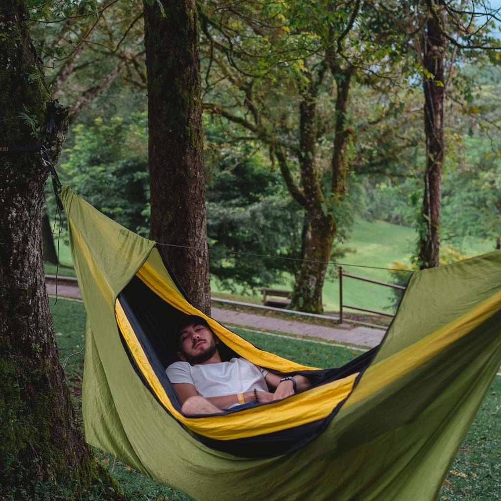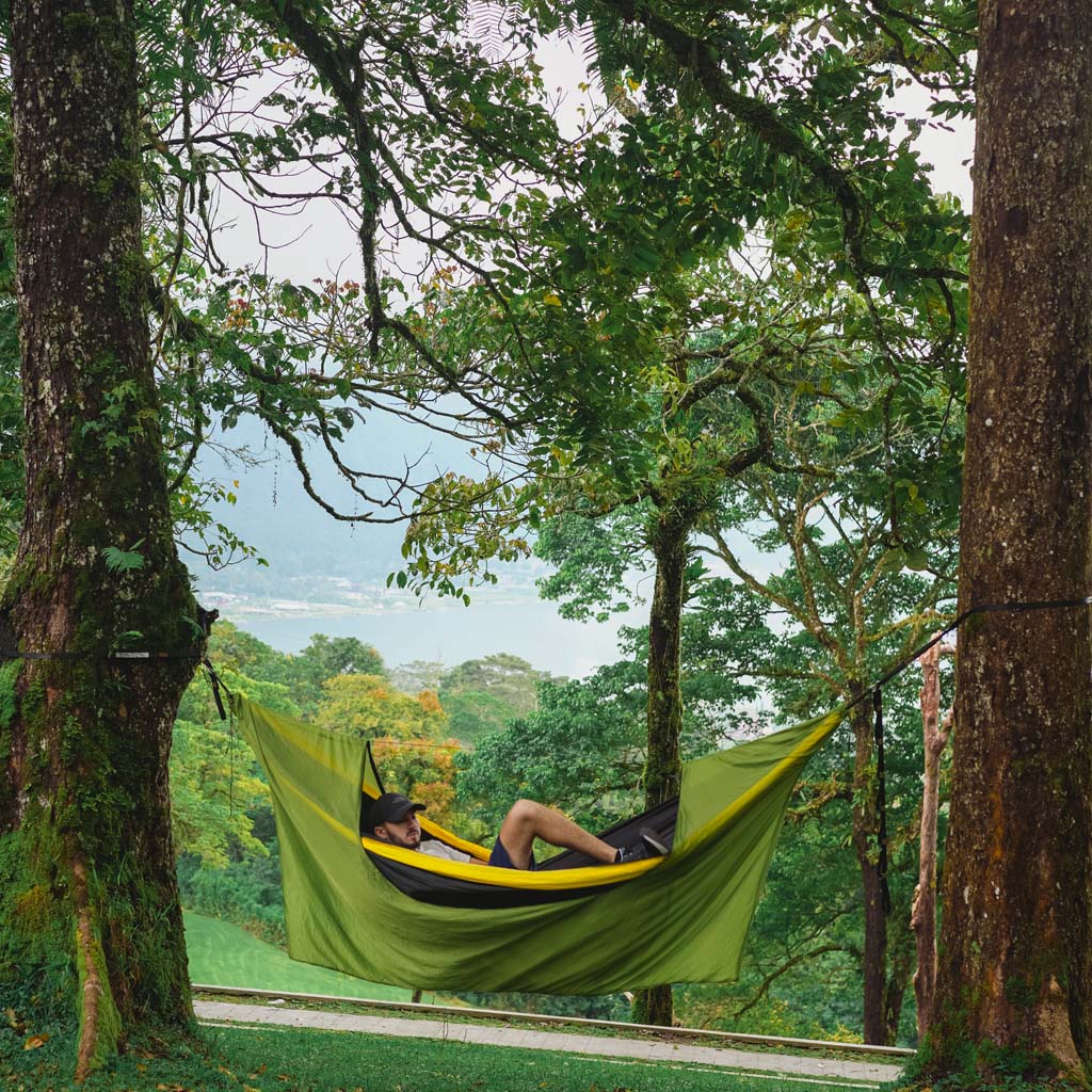 Egal, ob Sie ein erfahrener Baumbewohner oder einfach nur neugierig auf Hängematten sind, die balinesische Marke Ticket to the Moon stellt die besten Nylon-Fallschirmhängematten her, die es gibt. Und das sollten sie auch sein, wenn man bedenkt, dass diese Sultane des Swing schon seit den 90er Jahren im Geschäft sind. Ihre Hängematten sind leicht, schnell trocknend und maschinenwaschbar und werden nach höchsten Standards handgefertigt.