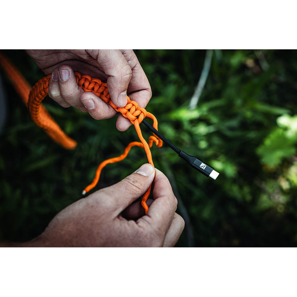 Wenn dein Handy zwanzig Meilen in der Wildnis den Geist aufgibt, reicht ein fadenscheiniges Kabel nicht mehr aus. Dieses USB-C-auf-USB-C-Kabel wickelt deine Rettungsleine in 30 Fuß militärtaugliches 550-Pfund-Paracord ein - das gleiche Material, das Fallschirmjäger mit der Erde verbindet. Sechs Lagen Panzerung schützen den Kern vor Quetschungen, Knicken und der Art von Bestrafung, die weniger gute Kabel in zwei Hälften brechen würde. Mit 96 Watt lädt es Ihren Laptop, Ihr Telefon oder Ihr Tablet schnell auf, ohne dass Sie ins Schwitzen kommen, und die Pivot-Protection-Halsverstärkung verhindert die lästigen Risse, die bei herkömmlichen Kabeln auftreten. Das Paracord ist nicht nur ein Schutz - wenn Sie es entwirren, haben Sie echtes Survival-Seil für Notreparaturen, den Bau von Unterkünften oder die Sicherung von Ausrüstung. Dies ist nicht nur ein Ladekabel, sondern eine praktische Vorbereitung, die von Abenteurern entwickelt wurde, die wissen, dass eine zuverlässige Ausrüstung über Leben und Tod entscheiden kann, wenn man meilenweit von der Zivilisation entfernt ist.