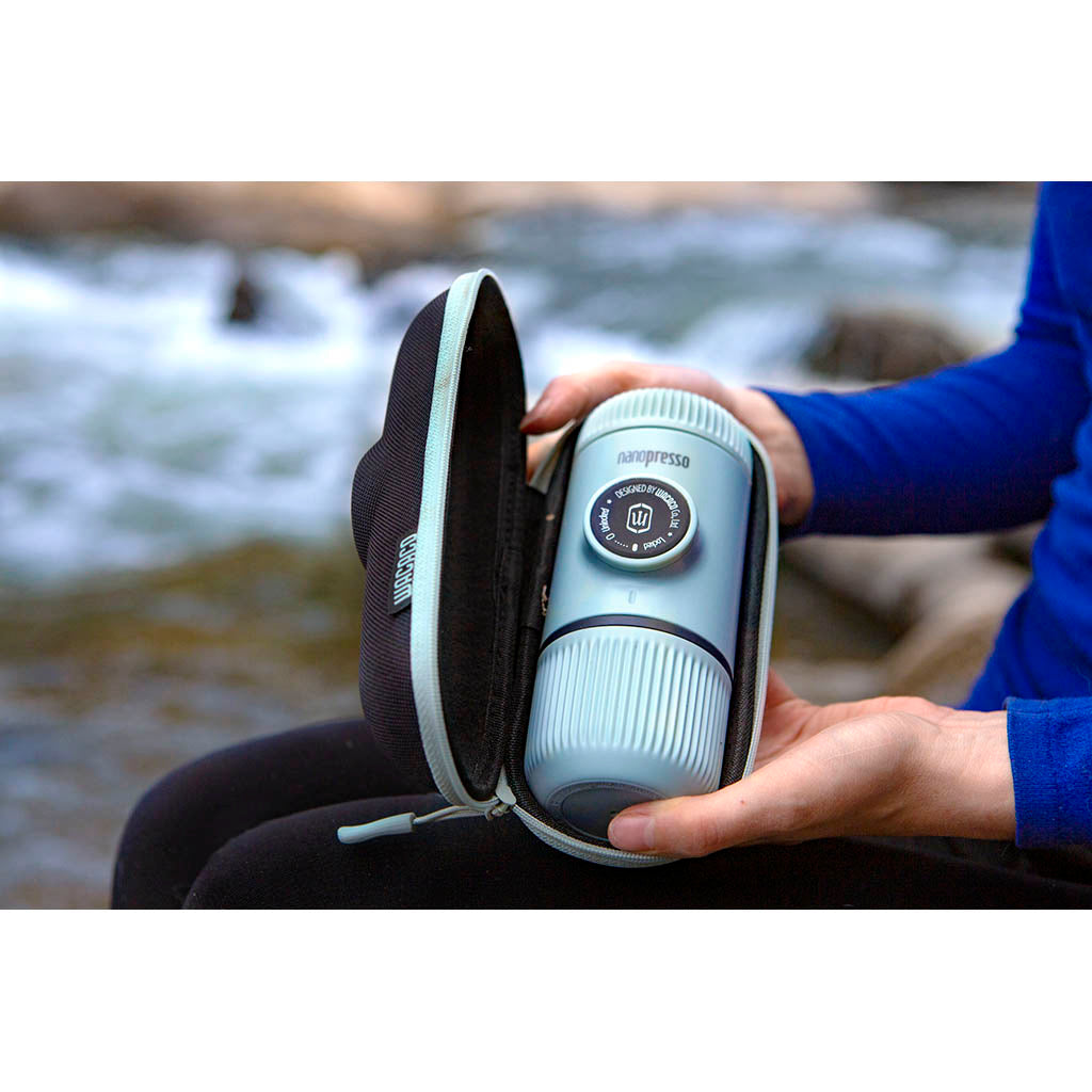 Instant-Kaffee? Igitt. Niemand möchte seinen Tag mit so etwas beginnen. Mit der kompakten und farbenfrohen tragbaren Kaffeemaschine Nanopresso Elements von Wacaco können Sie sich eine gute Tasse Kaffee gönnen, egal ob Sie in einem Zelt oder einem Hotelzimmer aufwachen. Das leicht zu bedienende Handpumpensystem kann in Sekundenschnelle einen Druck von 18 bar (261 PSI) erreichen - der Schlüssel zu einem reichhaltigen, weichen Espresso. Die Bedienung ist denkbar einfach. Einfach ein paar Löffel frischen, fein gemahlenen Kaffee in den Filterkorb füllen. Schrauben Sie den Siebträger auf und füllen Sie heißes Wasser in den Wassertank. Drehen Sie das Gerät auf den Kopf über eine Tasse, drehen Sie den Kolben und beginnen Sie zu pumpen, um jedes Mal einen perfekten Espresso zu erhalten. Die Wartung ist ebenso einfach, da alle Teile zum Reinigen leicht zu trennen sind. Die Nanopresso Elements wird außerdem mit einem robusten Etui geliefert, in dem sie sicher in Ihrem Rucksack, Koffer oder Seesack verstaut werden kann.