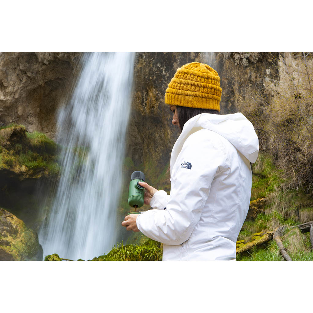 Instant-Kaffee? Igitt. Niemand möchte seinen Tag mit so etwas beginnen. Mit der kompakten und farbenfrohen tragbaren Kaffeemaschine Nanopresso Elements von Wacaco können Sie sich eine gute Tasse Kaffee gönnen, egal ob Sie in einem Zelt oder einem Hotelzimmer aufwachen. Das leicht zu bedienende Handpumpensystem kann in Sekundenschnelle einen Druck von 18 bar (261 PSI) erreichen - der Schlüssel zu einem reichhaltigen, weichen Espresso. Die Bedienung ist denkbar einfach. Einfach ein paar Löffel frischen, fein gemahlenen Kaffee in den Filterkorb füllen. Schrauben Sie den Siebträger auf und füllen Sie heißes Wasser in den Wassertank. Drehen Sie das Gerät auf den Kopf über eine Tasse, drehen Sie den Kolben und beginnen Sie zu pumpen, um jedes Mal einen perfekten Espresso zu erhalten. Die Wartung ist ebenso einfach, da alle Teile zum Reinigen leicht zu trennen sind. Die Nanopresso Elements wird außerdem mit einem robusten Etui geliefert, in dem sie sicher in Ihrem Rucksack, Koffer oder Seesack verstaut werden kann.