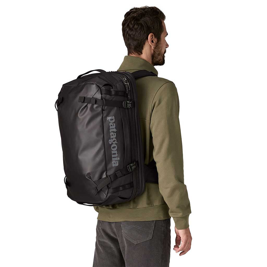 Nein, wir wussten auch nicht, wofür MLC steht. Es ist die Abkürzung für 'maximum legal carry-on'. Dies ist also Patagonias Interpretation des Handgepäcks, und obwohl Sie damit kein Upgrade für Ihren Sitzplatz in der Touristenklasse bekommen, ist es sicherlich ein ernsthaftes Upgrade für Ihr Gepäck. Fangen wir mit dem Material an - ein superrobuster und wetterfester Ripstop aus recyceltem Polyester mit einer matten Beschichtung aus recyceltem TPU-Laminat. Sieht schick aus, funktioniert noch besser. Der MLC lässt sich wie ein Koffer aufklappen, und im Inneren befinden sich zwei Innentaschen sowie eine Einschubtasche auf der Oberseite. Es gibt ein gepolstertes Laptop-Fach für Geräte bis zu 15 Zoll - zusammen mit Taschen für Ladegeräte und Kabel - und dieses Technikfach lässt sich ganz aufklappen, was das Passieren der Sicherheitskontrolle erleichtert. Sie können ihn auf drei verschiedene Arten tragen - mit einem verstaubaren Rucksackgurt, einem Schultergurt (der clevererweise vom Hüftgurt des Rucksacks übernommen wurde) und drei einfachen Griffen. Schlank, anpassungsfähig und gut durchdacht. Im Gegensatz zu den meisten Flughäfen.