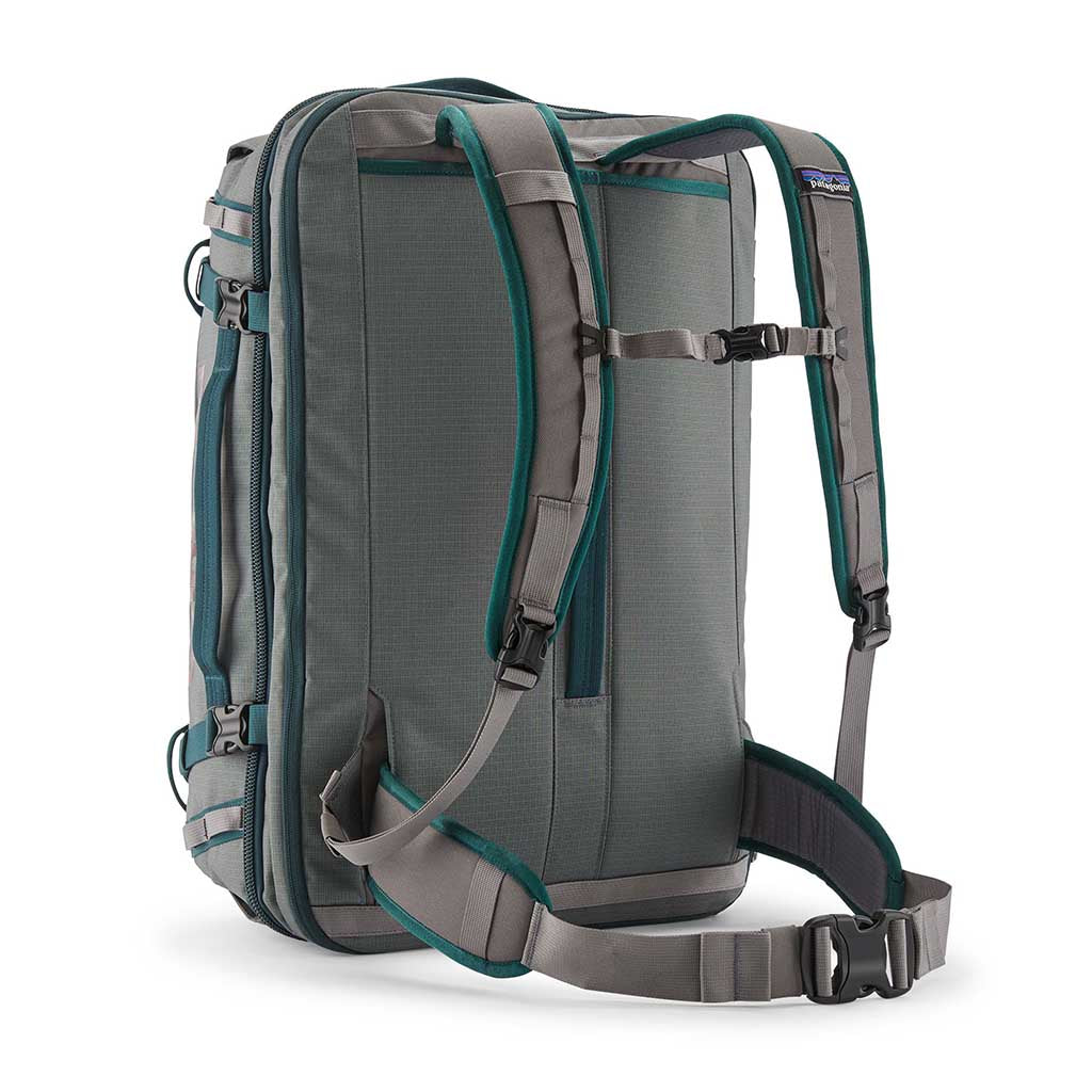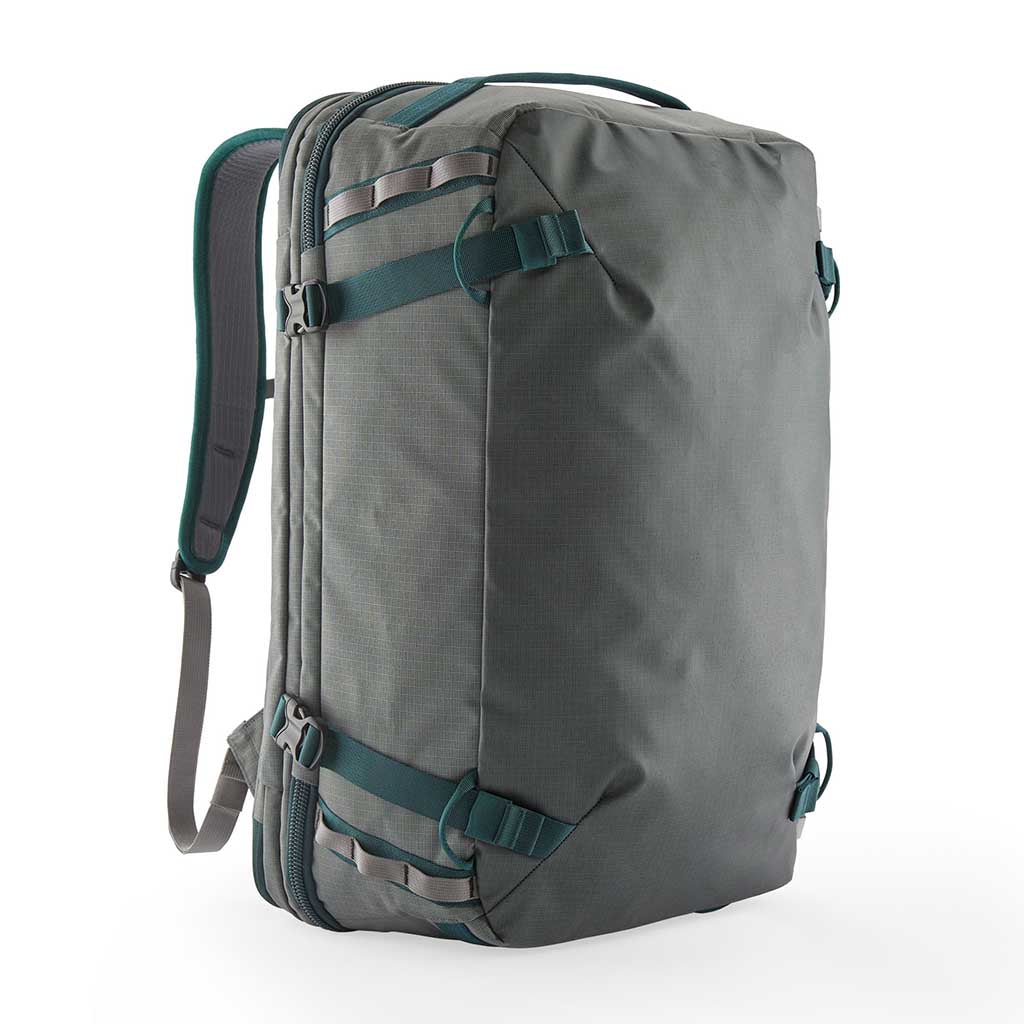 Nein, wir wussten auch nicht, wofür MLC steht. Es ist die Abkürzung für 'maximum legal carry-on'. Dies ist also Patagonias Interpretation des Handgepäcks, und obwohl Sie damit kein Upgrade für Ihren Sitzplatz in der Touristenklasse bekommen, ist es sicherlich ein ernsthaftes Upgrade für Ihr Gepäck. Fangen wir mit dem Material an - ein superrobuster und wetterfester Ripstop aus recyceltem Polyester mit einer matten Beschichtung aus recyceltem TPU-Laminat. Sieht schick aus, funktioniert noch besser. Der MLC lässt sich wie ein Koffer aufklappen, und im Inneren befinden sich zwei Innentaschen sowie eine Einschubtasche auf der Oberseite. Es gibt ein gepolstertes Laptop-Fach für Geräte bis zu 15 Zoll - zusammen mit Taschen für Ladegeräte und Kabel - und dieses Technikfach lässt sich ganz aufklappen, was das Passieren der Sicherheitskontrolle erleichtert. Sie können ihn auf drei verschiedene Arten tragen - mit einem verstaubaren Rucksackgurt, einem Schultergurt (der clevererweise vom Hüftgurt des Rucksacks übernommen wurde) und drei einfachen Griffen. Schlank, anpassungsfähig und gut durchdacht. Im Gegensatz zu den meisten Flughäfen.