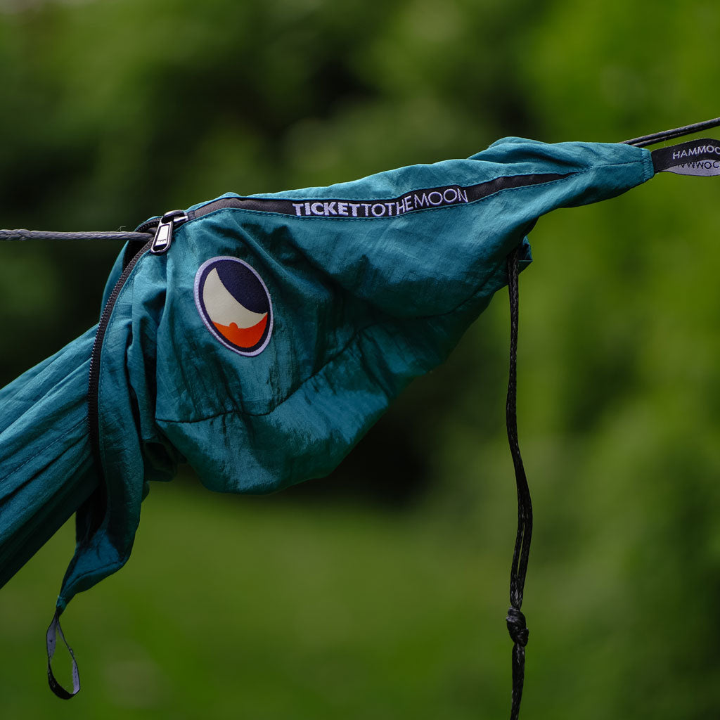 Das einzige wirkliche Problem mit einer Ticket to the Moon-Hängematte ist, sich selbst davon zu überzeugen, aus ihr herauszurollen und sich auf ein Abenteuer zu begeben - aber glücklicherweise machen das schnelle S-Haken-Aufhängesystem und der speziell entworfene Packsack es zu einem Kinderspiel, Ihre Hängematte mit auf Reisen zu nehmen.