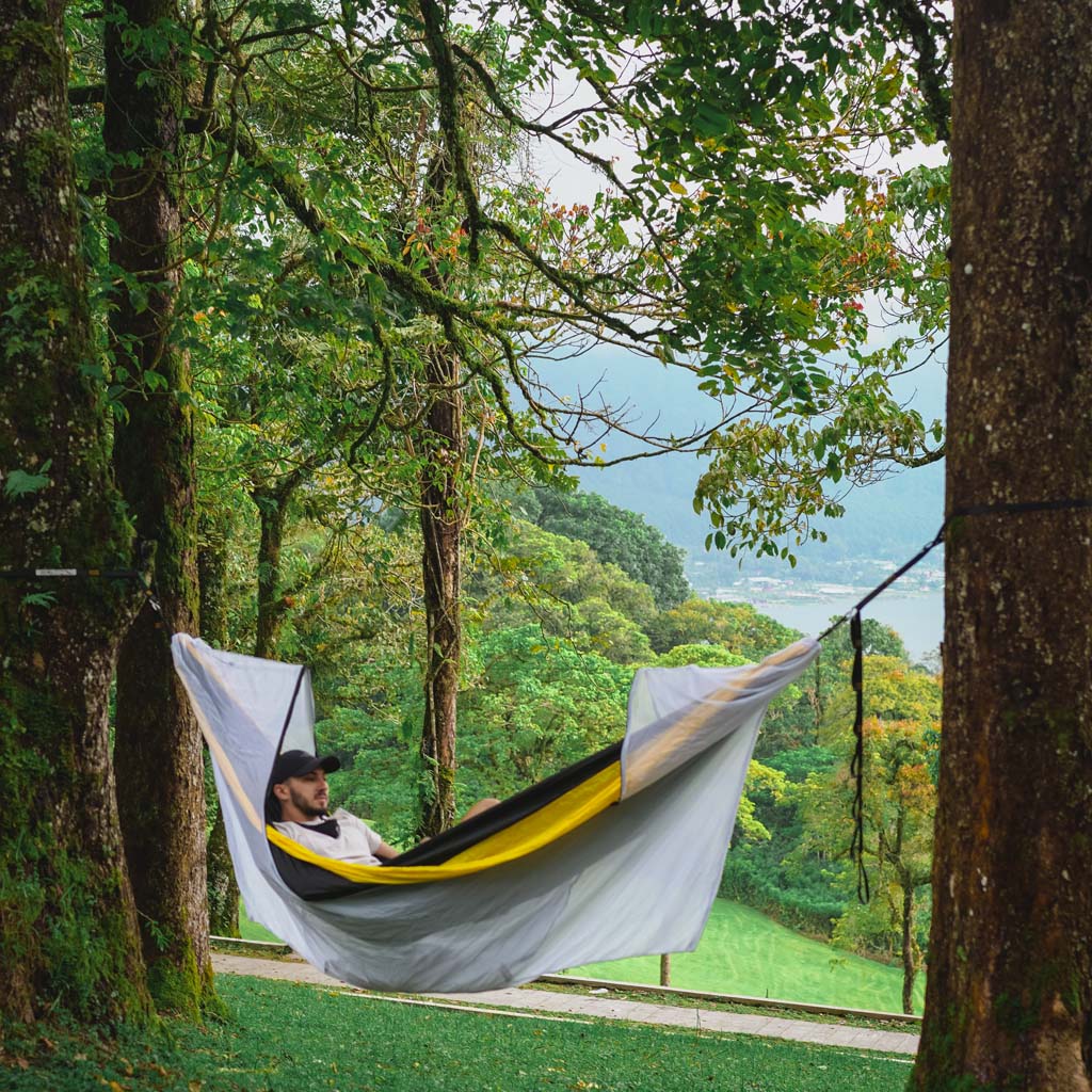 Egal, ob Sie ein erfahrener Baumbewohner oder einfach nur neugierig auf Hängematten sind, die balinesische Marke Ticket to the Moon stellt die besten Nylon-Fallschirmhängematten her, die es gibt. Und das sollten sie auch sein, wenn man bedenkt, dass diese Sultane des Swing schon seit den 90er Jahren im Geschäft sind. Ihre Hängematten sind leicht, schnell trocknend und maschinenwaschbar und werden nach höchsten Standards handgefertigt.