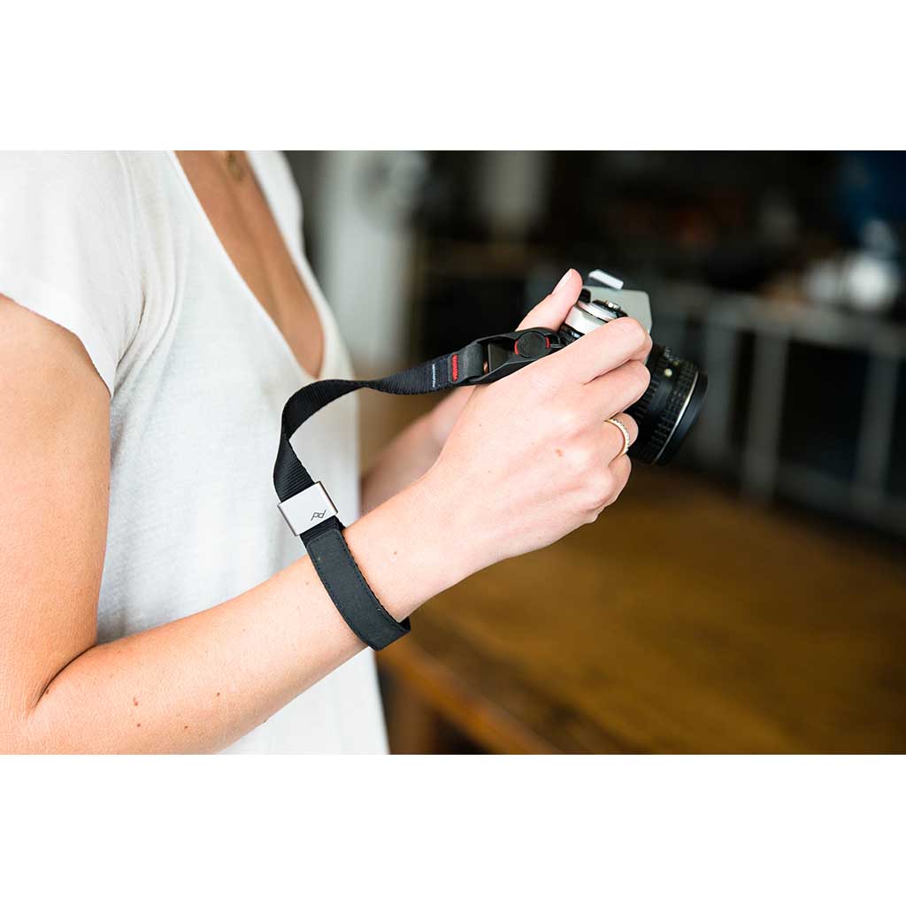 Der Peak Design Cuff ist eine unsichtbare Versicherungspolice für die Abenteuerfotografie. Er ist schlank, robust und sehr stilvoll. Diese elegante Handgelenkschlaufe hält Ihre Kamera oder Ihr Fernglas sicher fest, damit Sie unbesorgt fotografieren können - egal, ob Sie an einem Felsen hängen oder Hinterhöfe im Ausland erkunden. Die Schlaufe zieht sich automatisch fest, wenn Ihr Griff abrutscht, und bietet Ihnen so absolute Sicherheit ohne sperrige Ausrüstung oder lästiges Zubehör. Das Anchor Link-System lässt sich in Sekundenschnelle befestigen und hält bis zu 90 kg aus, sodass es selbst mit Profiausrüstung bombensicher ist. Sie schießen nicht? Dank des integrierten Magnetverschlusses lässt sich die Manschette in ein tragbares Armband verwandeln - so ist sie immer einsatzbereit. Für jeden, der spontan schießt, ist dies eine einfache Lösung, die Ihre Ausrüstung - und Ihren Schuss - rettet.