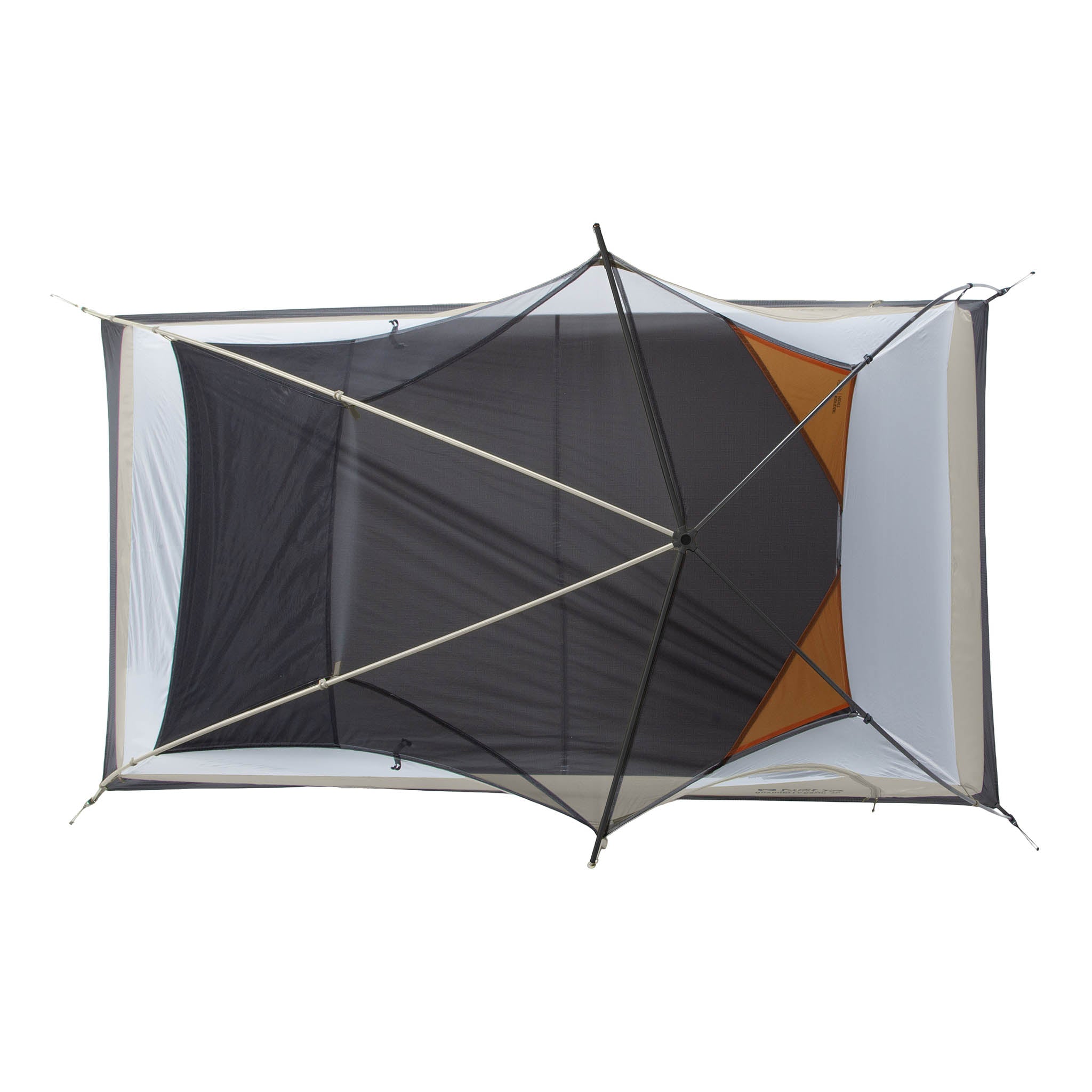 • Tent inner features white privacy mesh side panels with black mesh upper section for clear stargazing in warm and dry conditions when you don’t need a flysheet