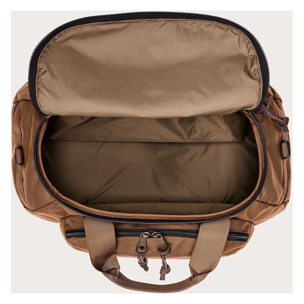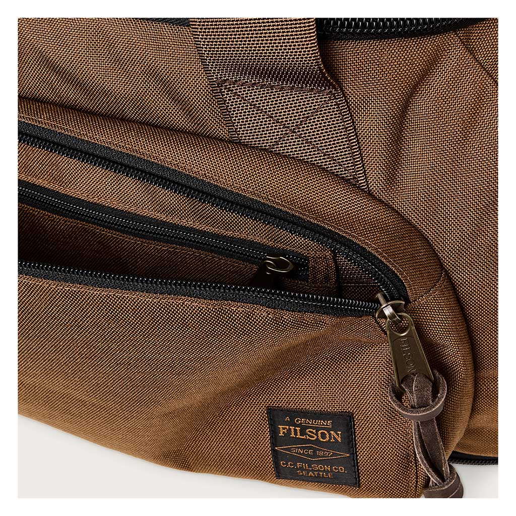 Der Dryden Duffle Pack von Filson ist ein seltenes Exemplar - ein Hybrid-Rucksack, der wirklich beide Aufgaben gut erfüllt. Er ist eine praktische Reisetasche und gleichzeitig ein überraschend komfortabler Wanderrucksack mit einem cleveren Design, das es ermöglicht, die gepolsterten Rucksackgurte im unteren Fach zu verstauen, wenn man ihn als Reisetasche benutzt. Schließlich will niemand, dass lose Gurte auf dem Gepäckband zerkaut werden. Die Tasche besteht aus 1000-Denier-Cordura-Nylon in Chuck-Norris-Qualität mit dem gleichen Flechtmuster wie ballistisches Nylon und ist daher unempfindlich gegen Schrammen und Kratzer. Der U-förmige Reißverschluss an der Oberseite ermöglicht einen einfachen Zugriff auf alles im Inneren, während die erweiterbare Außentasche perfekt geeignet ist, um nasse oder schmutzige Ausrüstung von der sauberen zu trennen. Die Tragegriffe und Beschläge aus Zaumleder sind die klassische Filson-Mischung aus gutem Aussehen und Haptik, während das gepolsterte 16-Zoll-Laptopfach dafür sorgt, dass Ihre Technik sicher reist, egal ob Sie ins Büro oder auf die andere Seite des Globus reisen.