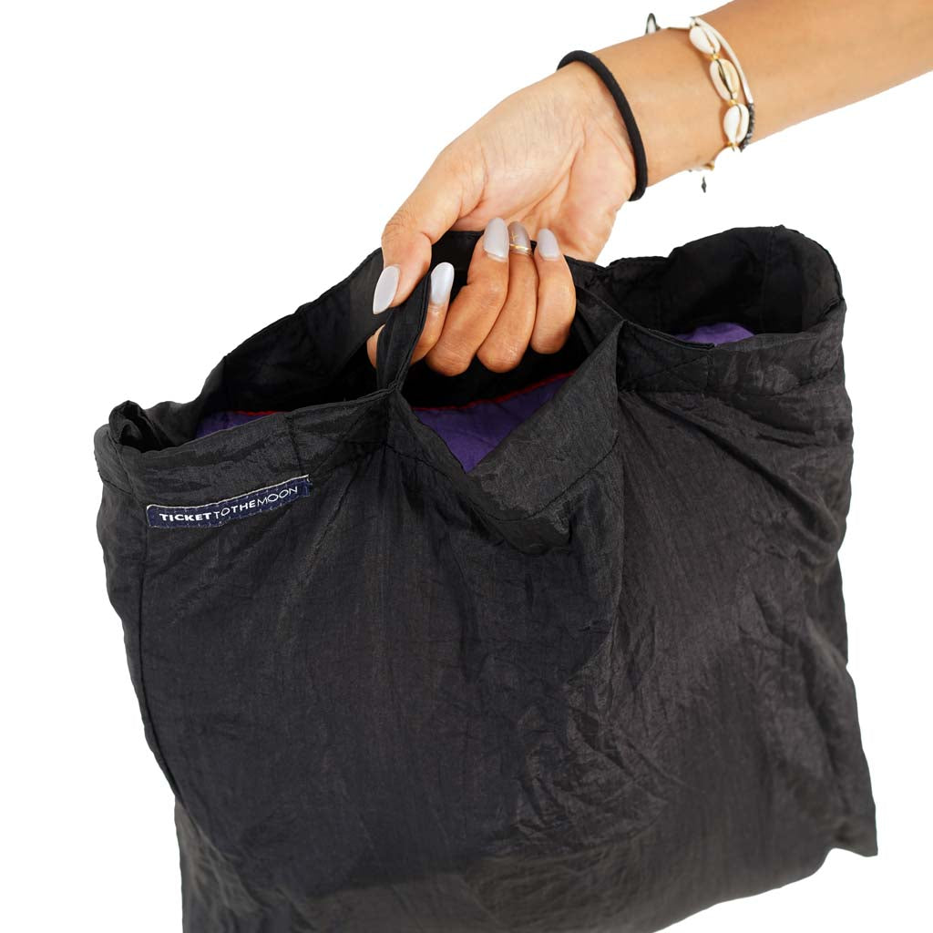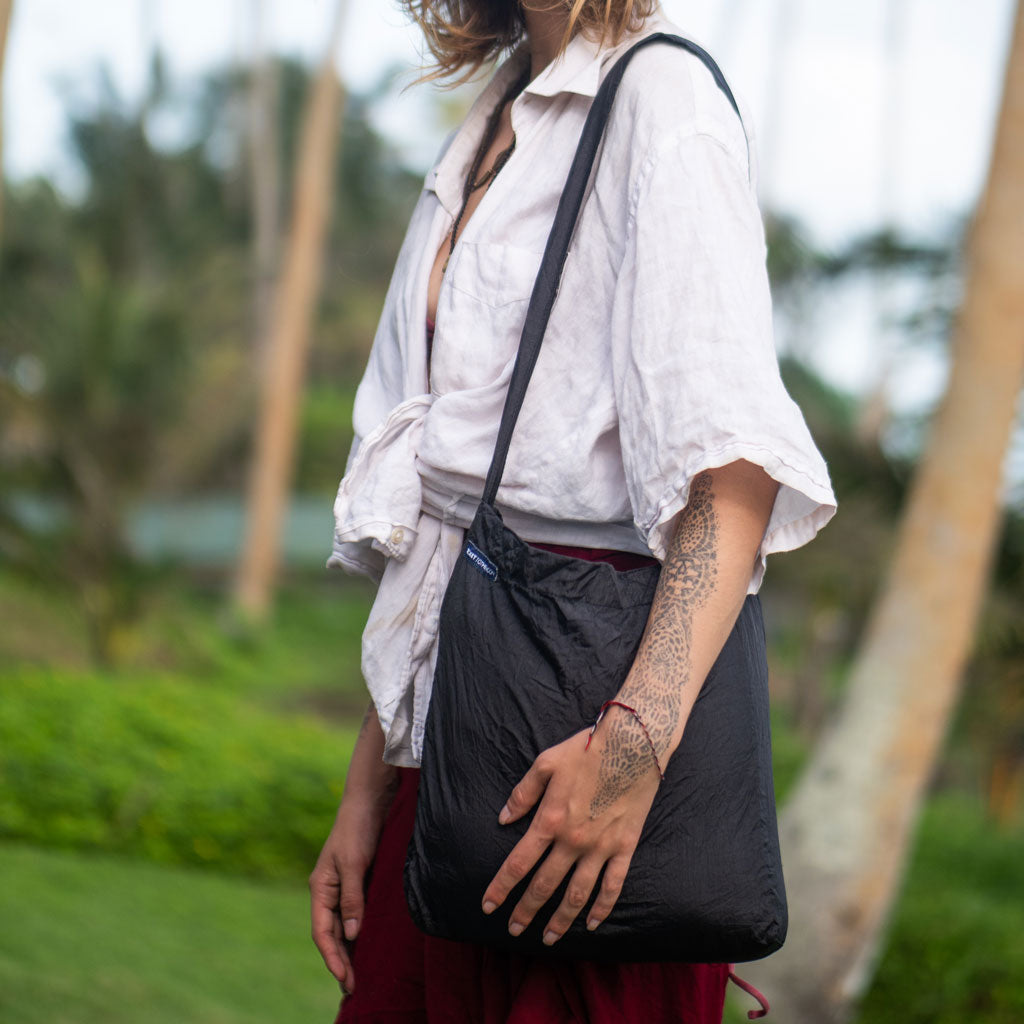 Ticket to the Moon hasst Abfall. Und zwar so sehr, dass sie sich weigern, welchen zu produzieren. Jedes Stück Stoff, das nach der Herstellung ihrer Hängematten, Steppdecken und Tarps übrig bleibt, wird gesammelt und gelagert, bis ihnen eine gute Verwendung dafür einfällt. Und genau das ist hier der Fall: Die Eco Bag von Ticket to the Moon ist ein alltägliches Accessoire, das nur aus Stoffresten und Materialien besteht, die sonst auf der Mülldeponie landen würden. Aber das bedeutet nicht, dass diese Tasche Müll ist. Die Eco Bag ist aus demselben strapazierfähigen Fallschirmnylon gefertigt, aus dem auch die Hängematten bestehen. Sie ist eine robuste, große und elegante Umhängetasche, die den Platz einnimmt, den sonst Einweg-Plastiktüten einnehmen würden. Sie ist in drei Größen erhältlich. Wählen Sie einfach die für Sie passende Größe aus - und freuen Sie sich jedes Mal, wenn Sie sie sich über die Schulter werfen, um unserem Planeten einen Gefallen zu tun.