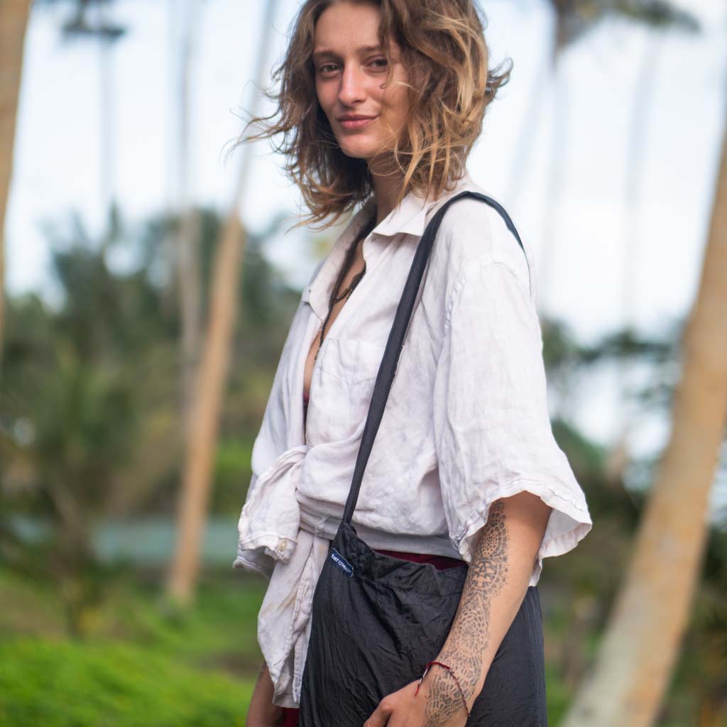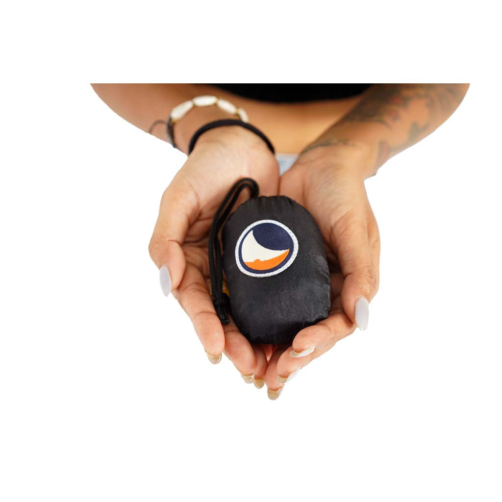 • Ethisch hergestellte Materialien - Hergestellt aus Stoffresten, die ursprünglich für die Hängematten von Ticket To The Moon produziert wurden. So wird dieses Material nicht auf Mülldeponien entsorgt und gelangt in die Hände von aufmerksamen Abenteurern wie Ihnen.