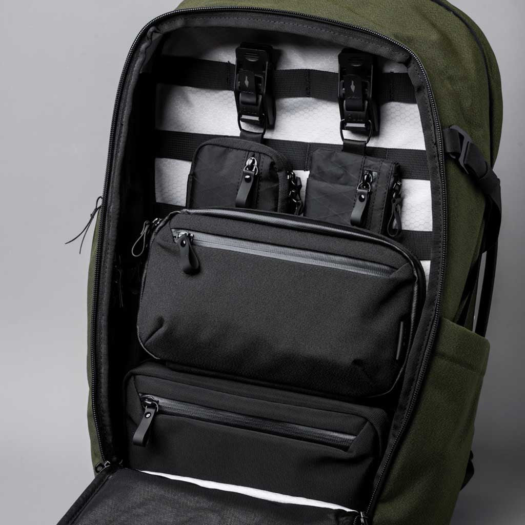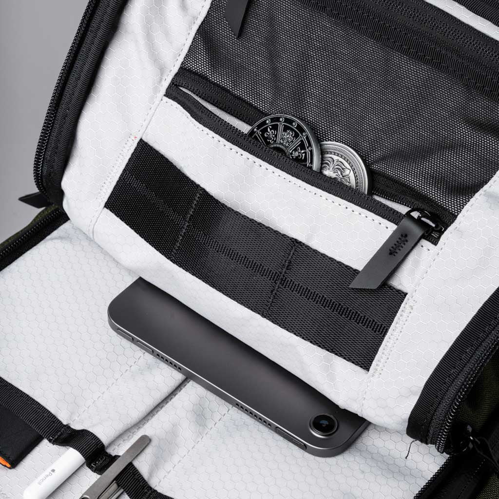35 Liter Fassungsvermögen mit drei Fächern und Schnellzugriffstaschen