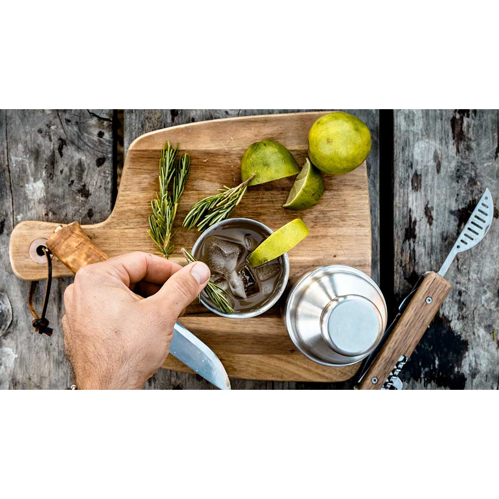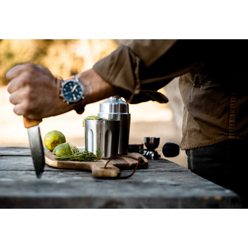 Deshalb haben wir uns an High Camp Flasks gewandt. Genau wie der beste Bourbon wurde diese Premium-Marke in den USA geboren: die Idee zweier Outdoor-Liebhaber von Craft-Cocktails, die das ultimative Barglas für das Backcountry kreieren wollten. Das Ergebnis war ein schlanker und dennoch robuster Becher aus Edelstahl, der die perfekte Größe hat, um ihn am Lagerfeuer zu wiegen. Als nächstes kam eine Isolierflasche, dann ein Highball-Cocktail-Shaker – alle so konzipiert, dass sie schön funktional, aber auch kompakt und verstaubar sind. Kurz gesagt, es ist das beste Camp-Getränk, das uns begegnet ist, perfekt für abenteuerlustige Geister. Prost!